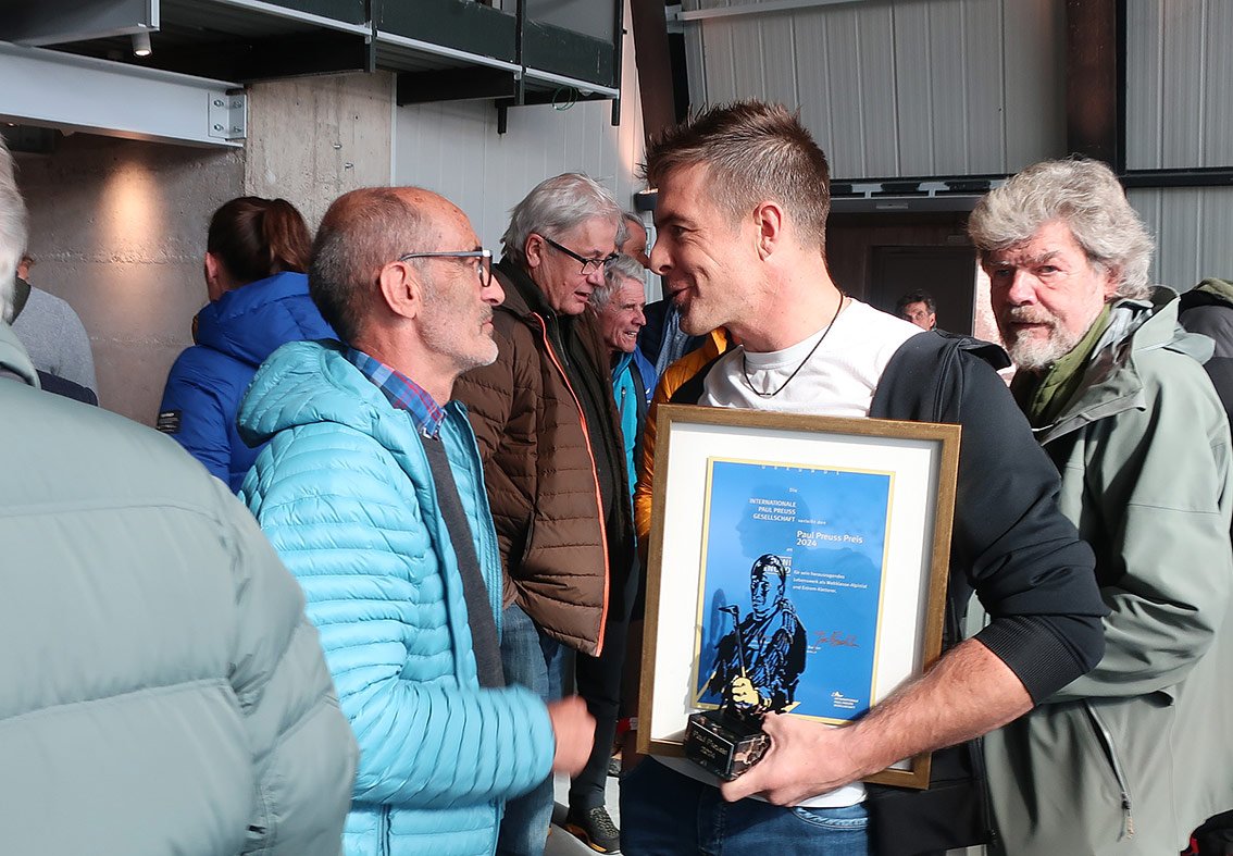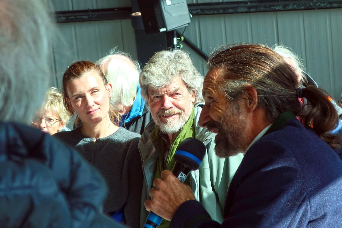 Neben der Preisverleihung an Dani Arnold ist die jährliche Veranstaltung quasi ein Stelldichein von namhaften Spitzenalpinisten. Peter Habeler, Hans Kammerlander, Hanspeter Eisendle, Robert Schauer, Jo Bachler, Igor Koller, Marko Prezelj, Alexander Huber, Christoph Hainz, Walter Laserer und natürlich Reinhold Messner (für den man nachträglich eine kleine Feier zum 80. Geburtstag veranstaltete) waren nur einige der Namen, die sich am Helm oberhalb von Sexten einfanden. Im Zentrum stand natürlich Reinhold Messner, der es sich trotz seines vorangeschrittenen Altes nicht nehmen ließ, gemeinsam mit seiner Frau Diane den Paul Preuß Preis wie alljährlich persönlich zu überreichen.