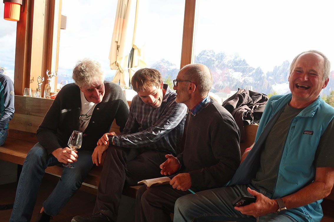 Messner deutete an, dass er die Agenden dieses Preises eventuell in jüngere Hände übergeben wird und wünschte sich gleichzeitig, dass der Paul-Preuß-Preis und die damit verbundenen Preisträger internationaler werden sollen - wie auch schon beim Bergsteigen sieht Messner die Zukunft mit weisem Weitblick über die Landesgrenzen hinaus. Alexander Huber schlug in seiner Laudatio eine ähnliche Tonlage an und gab dem ganzen mit dem fließenden Wechsel zwischen Deutsch und Englisch schon mal die Richtung, in die es gehen soll. Abschließend tauschten sich die Alpinisten bei Fingerfood und perfekten Sextener-Dolomiten-Blick im gemütlichen Helm-Panoramarestaurant wie üblich aus, dabei wurden die Köpfe zusammengesteckt, es wurde über alte und neue Projekte philosophiert - ein würdiger Ausklang der Veranstaltung in über 2000 Metern Seehöhe.