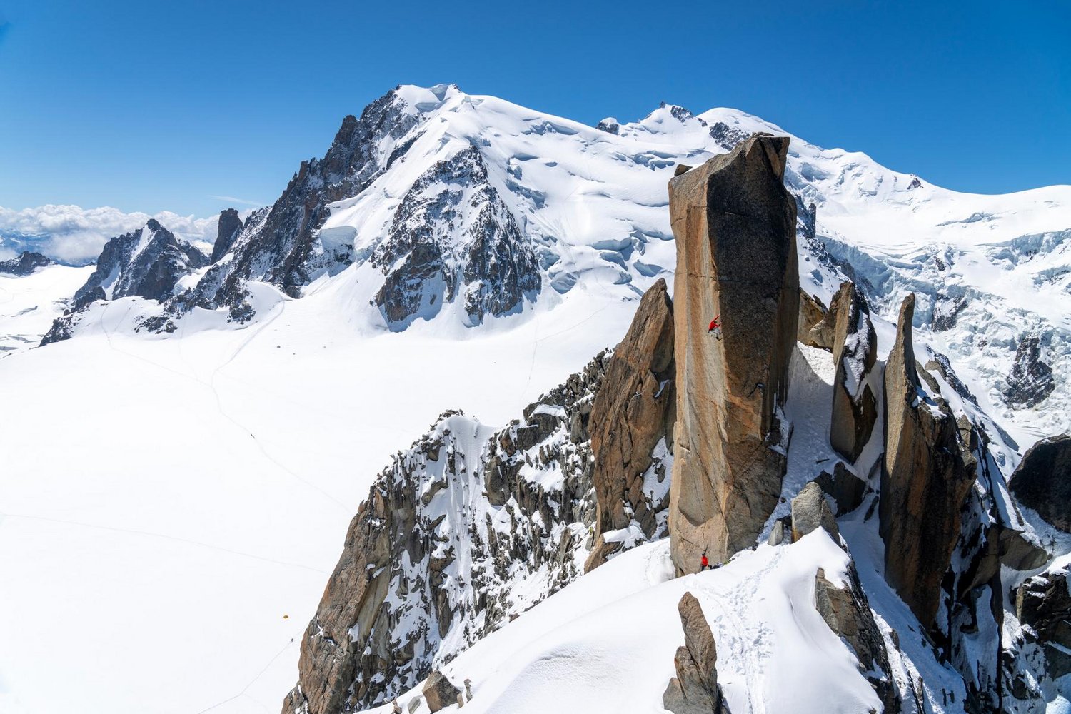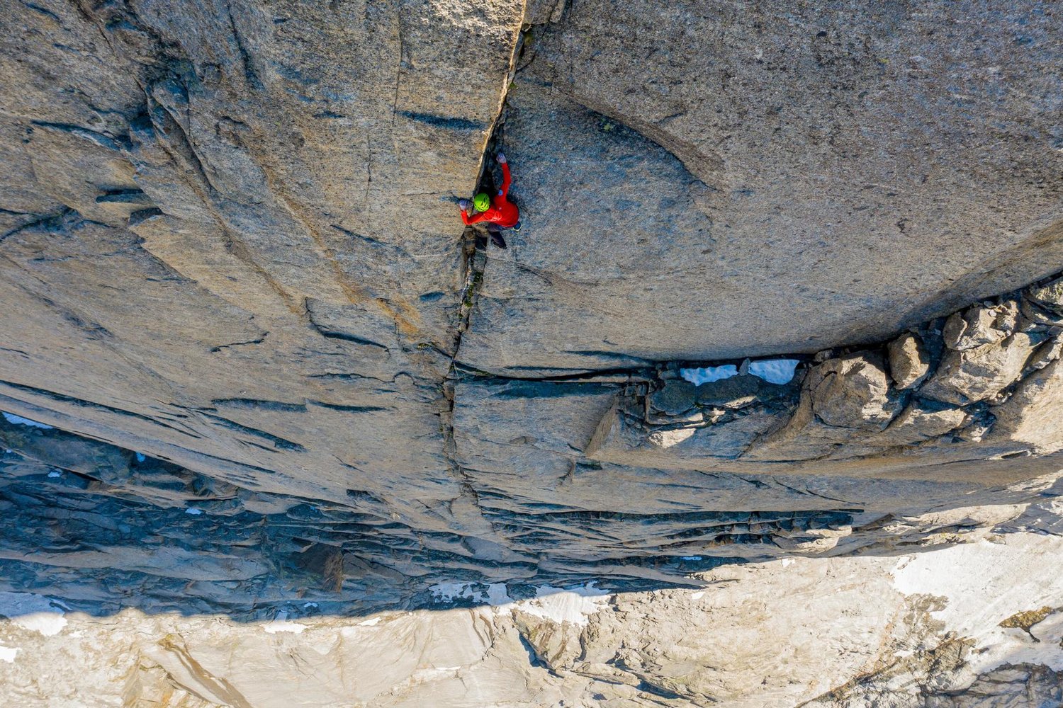 Alex Honnold soloing high up on the American Direct on Les Drus, Chamonix (c) Renan Ozturk / Red Bull Content Pool