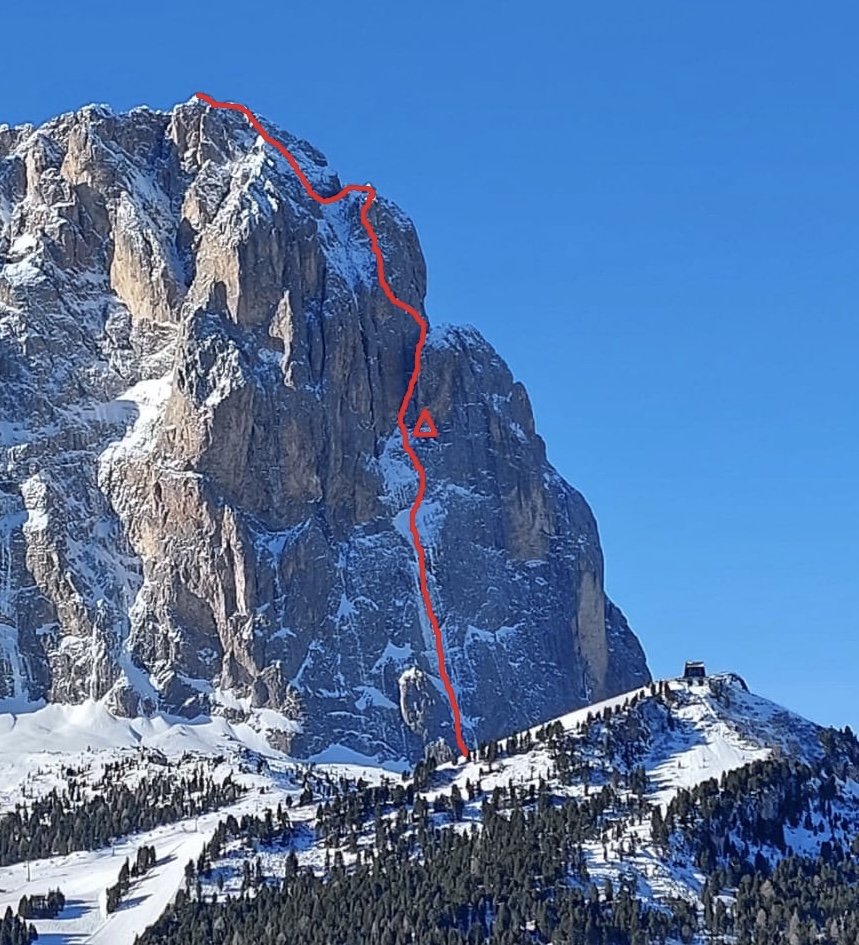 Die Hauptschwierigkeiten bestanden im Anbringen von Sicherungen oder im Akzeptieren, dass es halt keine gibt. Die logische Fortsetzung der Linie über „Legrima“ wäre sicherlich ein Ziel für die Zukunft, aufgrund der sehr trockenen Verhältnisse ohne Kletterschuhe für uns aber sehr hart geworden. Also kletterten wir weitere 4 Seillängen (200 m) auf der „Nordkante“ (E. Pichl, W. Waizer, August 1918) bis zu einer unscheinbaren Biwakhöhle. Am nächsten Tag Ausstieg in weiteren 15 Seillängen bei teilweise stürmischem Wind über die „Nordkante“ zum Gipfel des Langkofel (3181 m), Abstieg nach St. Christina und zurück trampen zum Auto am Sellajoch.
