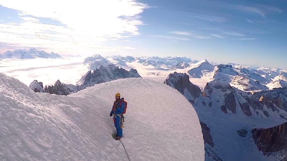 Markus kennt den Cerro Torre wie sein Wohnzimmer, 2013 gelang ihm die Ragni-Route (M4 90°, 600m) in der Westwand Cerro Torre im Alleingang und ein Jahr später stieg er wieder bei patagonischem Sauwetter mit Schneesturm in etwas mehr als 3 Stunden solo an der gleichen Route auf den Torre Gipfel. Im gesamten Massiv wurden an diesem Tag wetterbedingt keine Besteigungen durchgeführt.