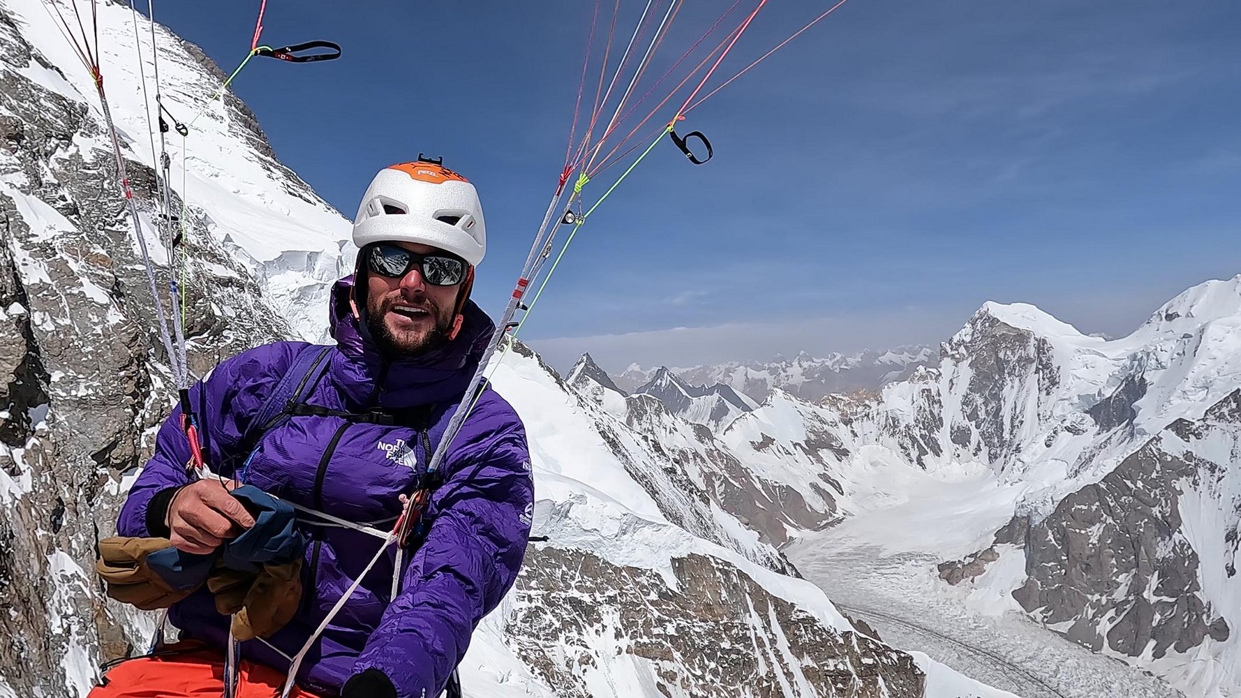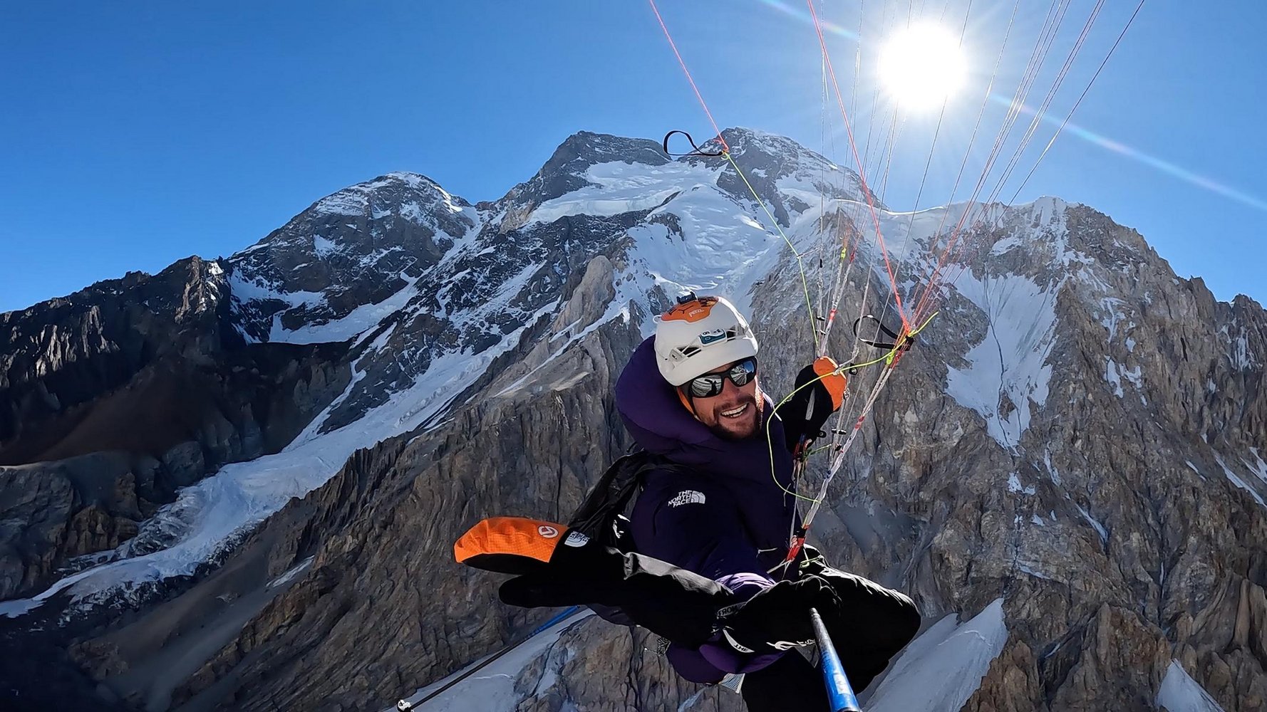 Benjamin Védrines beim Flug vom Broad Peak (c) Benjamin Védrines