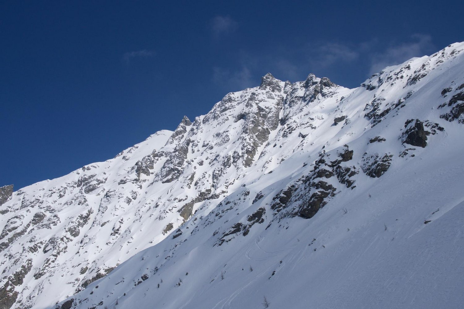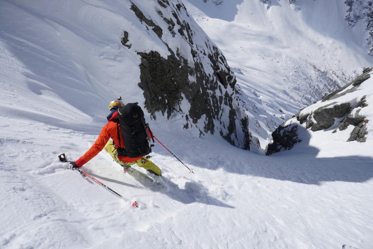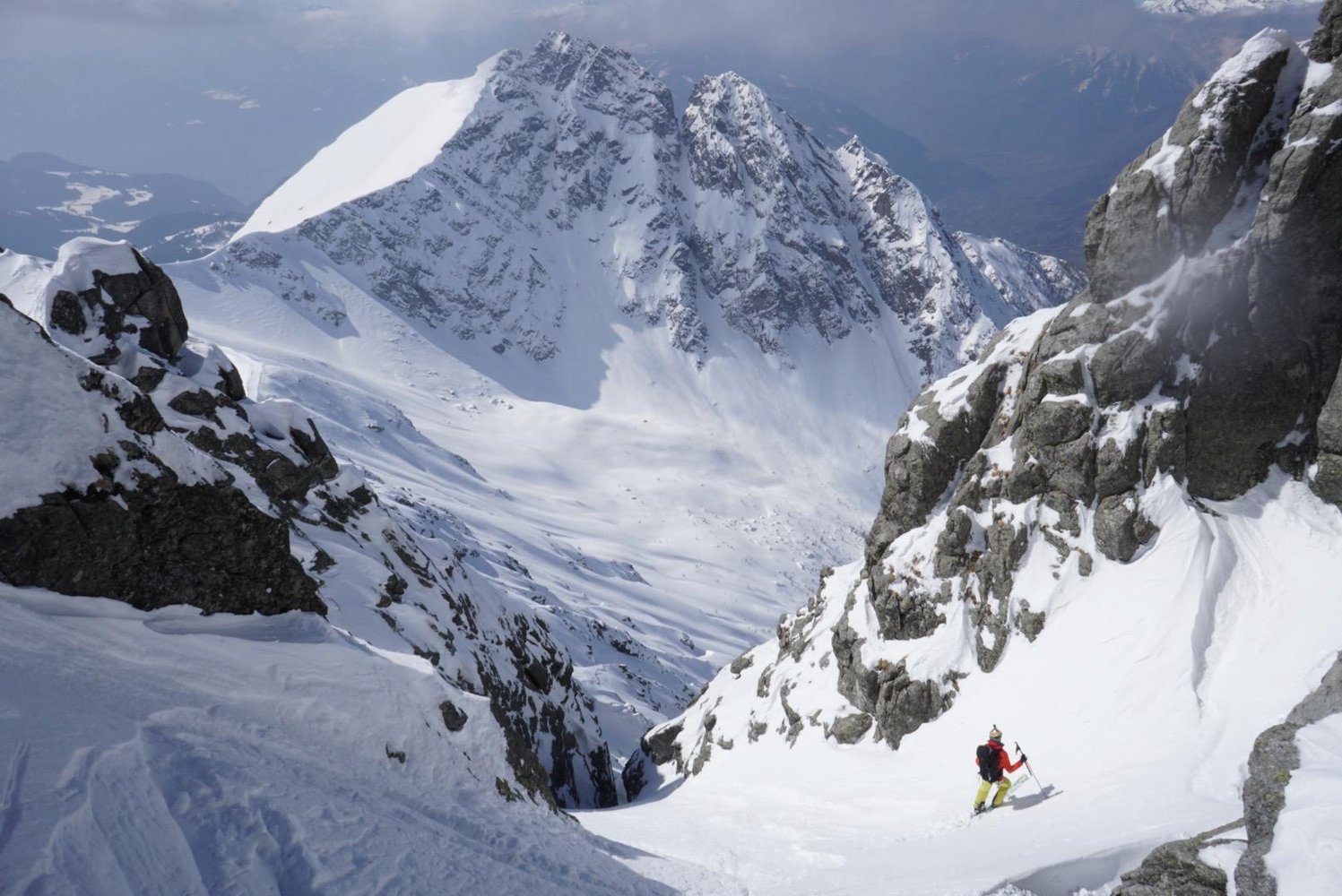 Nachdem wir heuer aufgrund der super Verhältnissen und perfekten Schneelage einige Male über das Nordcouloir (600m, 50°) des gegenüberliegenden Ifingers 2581m abfuhren, fiel mir bald das markante Couloir an der Westwand der Vorderen Verdinser Plattenspitze 2680m, bei den Einheimischen auch Plattinger genannt, auf. Ende Februar fuhr ich mit Aaron Durogati die Westwand der Hinteren Verdinser Plattenspitze 2660m bei schlechten Verhältnissen ab. Von da an ließ mich diese markante direkte Linie nicht mehr in Ruhe und ich wartete fast noch einen weiteren Monat, bis die Verhältnisse und das Wetter mitspielten.