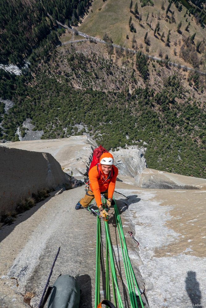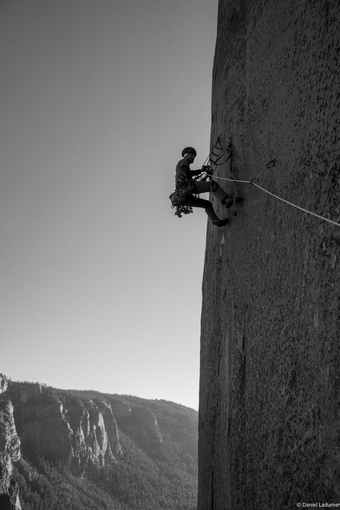 2. Tag: Raufjumarn und bis zum El Cap Tower klettern (bester Biwakplatz der Route).