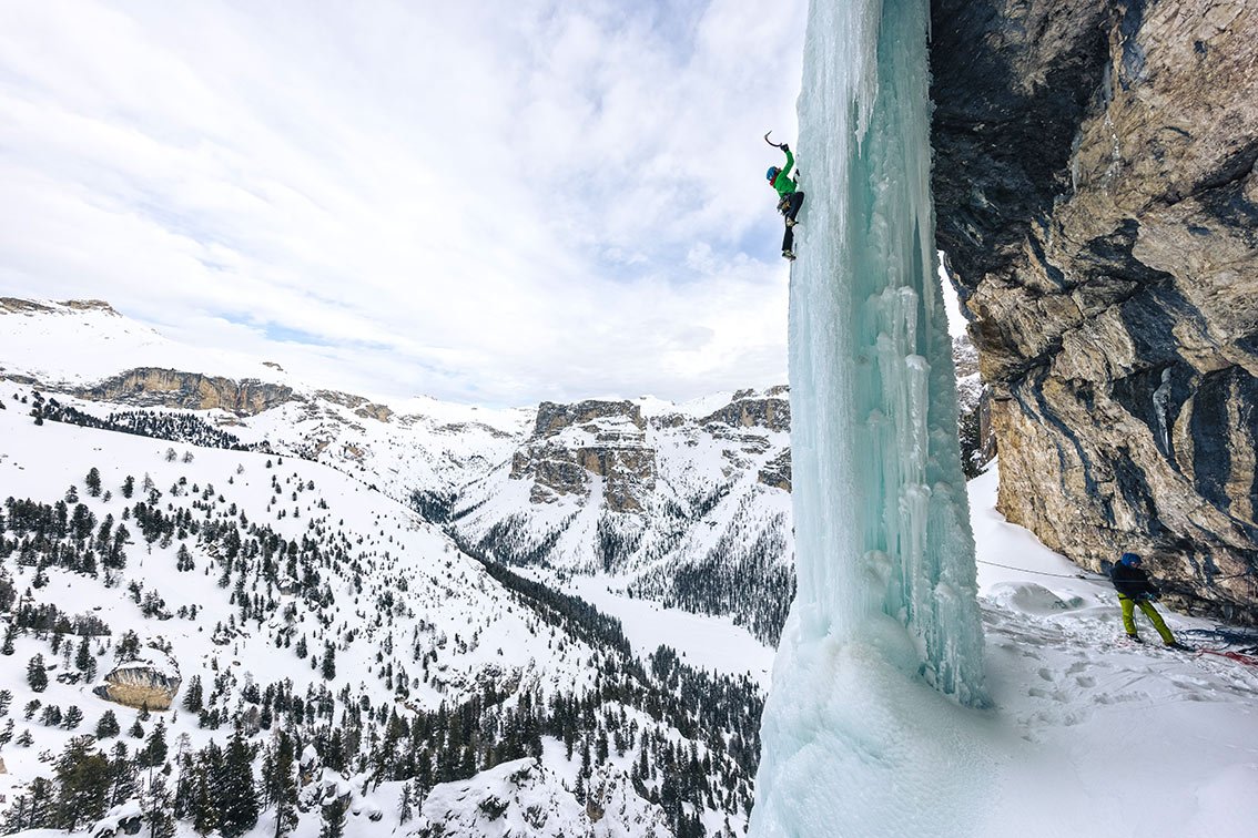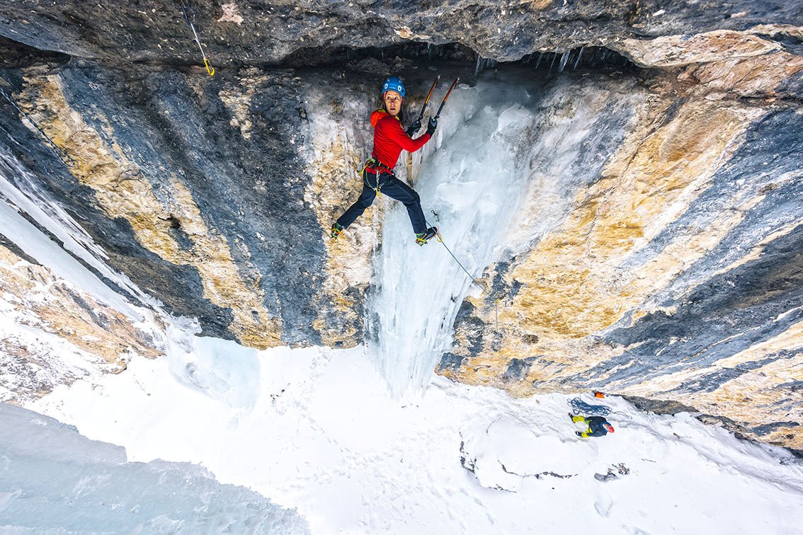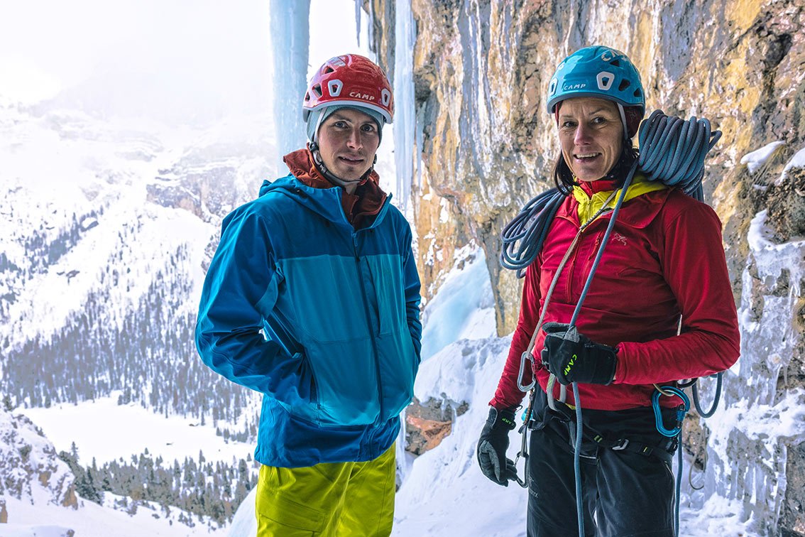 Ines Papert und Luka Lindič in der Route Godzilla (M9+/WI5+) im Langental