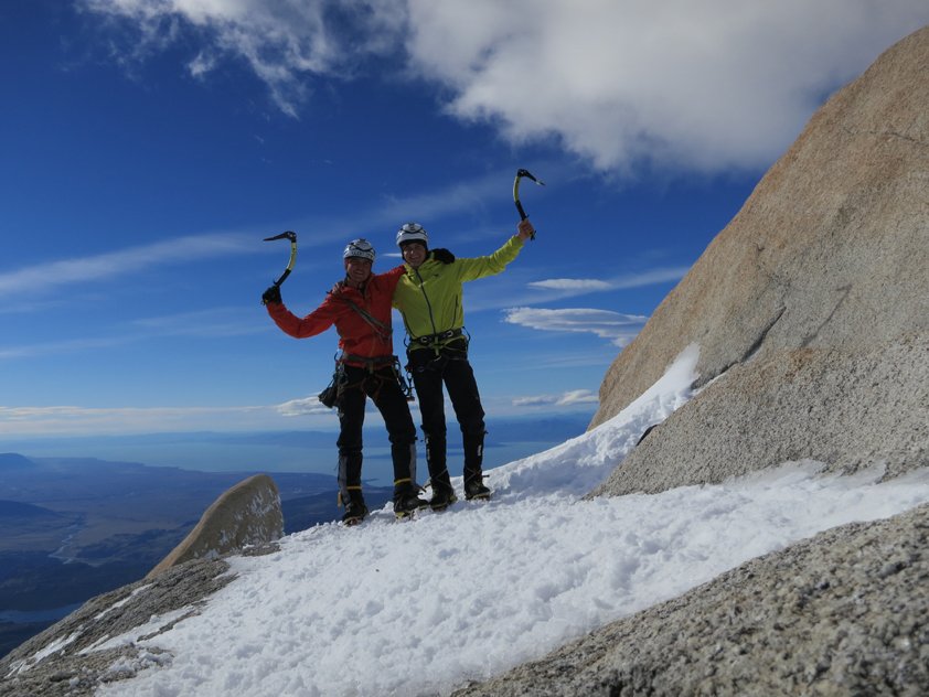21h und 30min nach dem Abmarsch werden die beiden fürGeduld und Ausdauer belohnt und stehen alleine und überglücklich um 15:30 Uhr auf dem Gipfel des Fitz Roy.