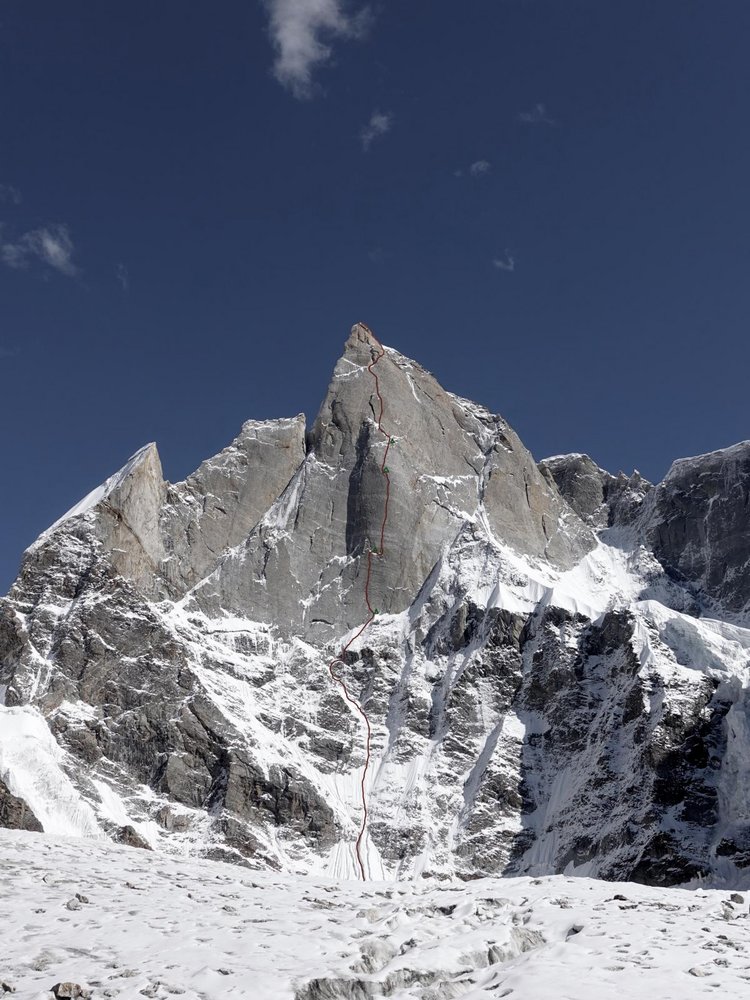 Am 7. September startet das Dreierteam aus dem Mammut Athleten Stephan Siegrist sowie Thomas Huber und Julian Zanker ihr Abenteuer im Kaschmir Himalaya. Am 13. September erreichen sie das Basislager. Bestes Wetter gönnt dem Team keine Pause und sie können bereits am 18. September das vorgeschobene Basislager (ABC) auf 5050 Meter etablieren. Nach mehreren Materialtransporten und Vorbereitungen steigt das Team am 1. Oktober in die Wand ein. Ihren Plan, diese in fünf Tagen zu durchsteigen, können sie nicht einhalten. Aus taktischen Gründen brechen sie ihren ersten Durchstiegsversuch ab und kehren ins Basislager zurück. Mit neuer Kraft und frischer mentaler Einstellung sind sie am 8. Oktober wieder zurück, mitten im Abenteuer! Das Wetter ist stabil. Morgens wolkenlos, mittags aufziehende Bewölkung, nachmittags Schneefall. Das Team hat mit vereisten Rissen, Spinndrift und extremer Kälte bis zu -20 °C zu kämpfen. Dazu ist harte Technokletterei bis A3+ gefordert. Am Gipfeltag, dem 14. Oktober, werden sie dafür mit sonnigem Wetter belohnt. Auf die Frage hin, wie es zu der Idee kam, antwortet Steph Siegrist:
