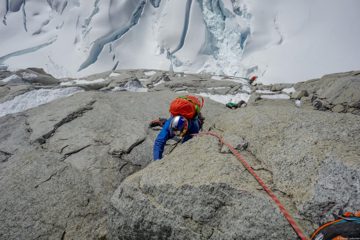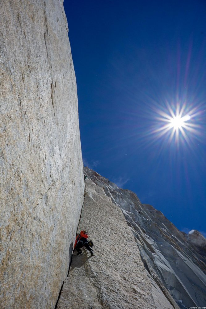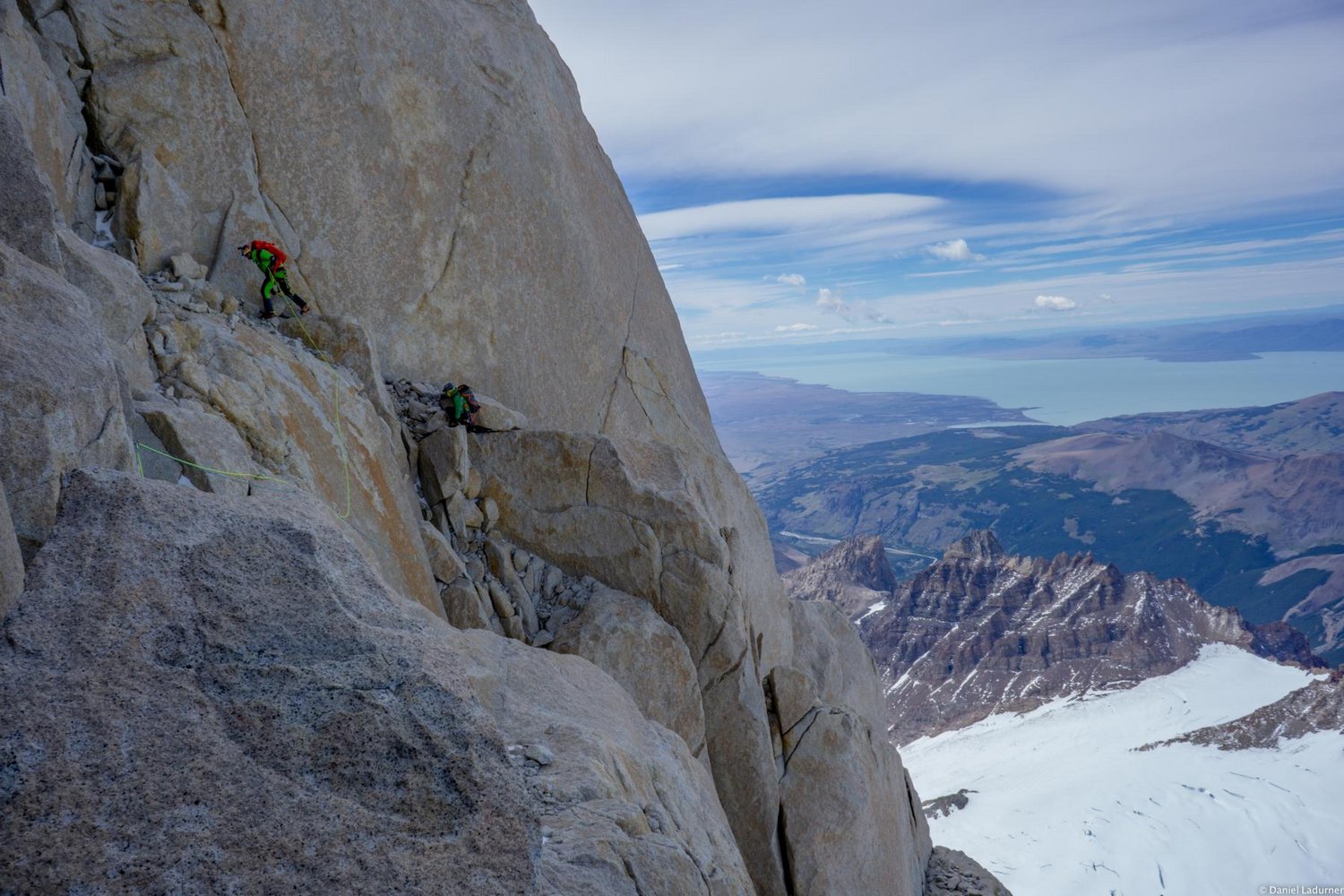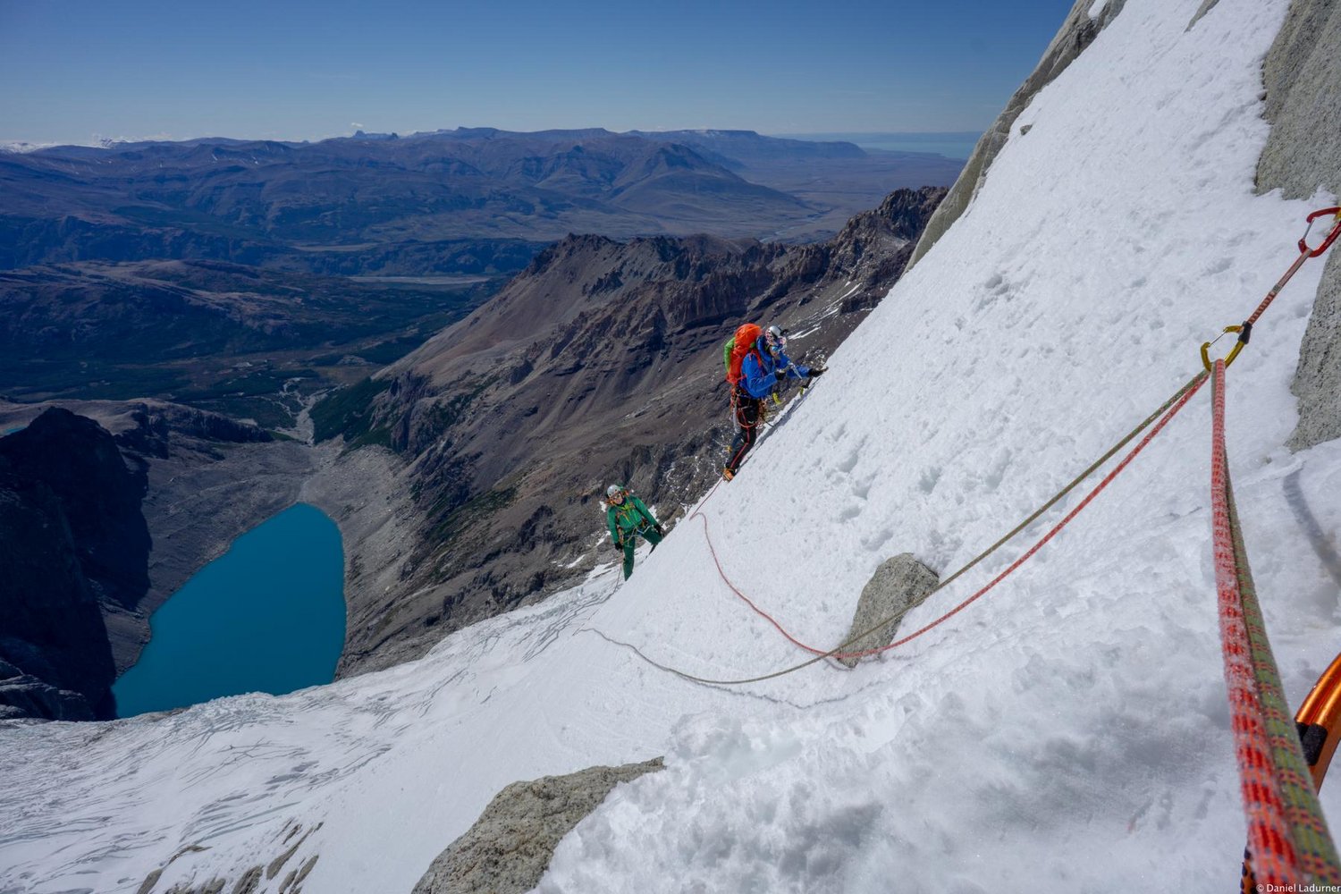 Gemeinsam mit Mirco Grasso bestiegen Durogati und Ladurner am 9. Jänner den Aguja Saint Exupery (2558 Meter) über die Route der Erstbesteiger, die „Via Italiana“. „Die Risse in den schwierigen Seillängen waren vereist, nass oder mit Schnee gefüllt“, erzählt Ladurner. Durogati wollte einen Flug ins Basislager versuchen, was ihm nach einiger Zeit sogar gelang – als wahrscheinlich erster Pilot, wie die Alpinisten glauben. Ladurner und Grasso seilten sich zum Einstieg ab und stiegen zum Zelt unterhalb des Gletschers ab, wo Durogati bereits mehrere Stunden wartete. Ihn quälte eine schmerzhafte Entzündung am Handgelenk, weshalb er sich in den darauffolgenden Tagen für eine einfachere Route entschied: Gemeinsam mit Tommaso Lamantia erkletterte er die Aguja de l`S. Die Schlüsselseillängen seilten sich die Beiden ab, dann schwebten sie im Tandemflug ins Tal. Ein weiterer Jungfernflug gelang gelang Durogati wenige Tage später vom Gipfel des Mojon Rojo (2170 Meter) – er bestieg den Gipfel im Alleingang und flog mit dem Paragleiter ins Tal.