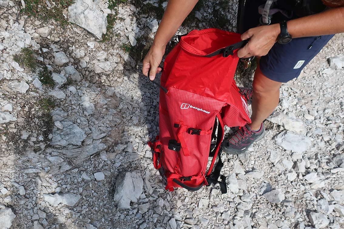 Durch die solide Verarbeitung und die vielen Zurr- und Verstellbänder kommt man aber auf ein recht stattliches Gesamtgewicht. Der Berghaus MTN Seeker 32 bringt komplett über 1 Kilo auf die Waage. Sicher lassen sich durch Abmontieren und herausnehmen ein paar Dekagramm einsparen, als Leichtgewicht geht der Berghaus MTN Seeker 32 aber nicht durch.
