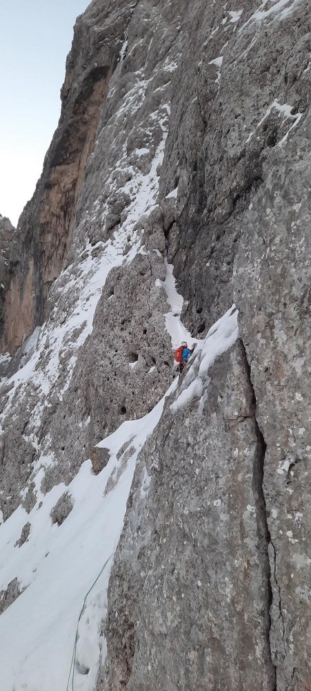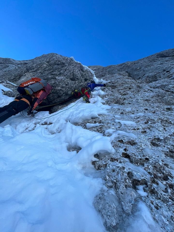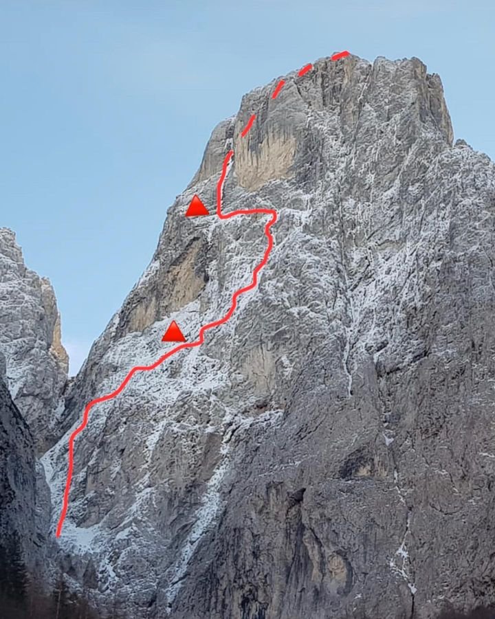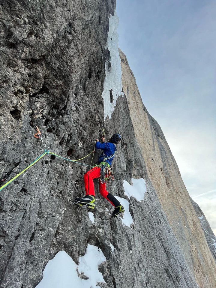 Nicola Bertoldo und Diego Dellai konnten diese beeindruckende, nachdem sie vom Gipfel abgeseilt sind, Ende November 2023 erstbegehen.