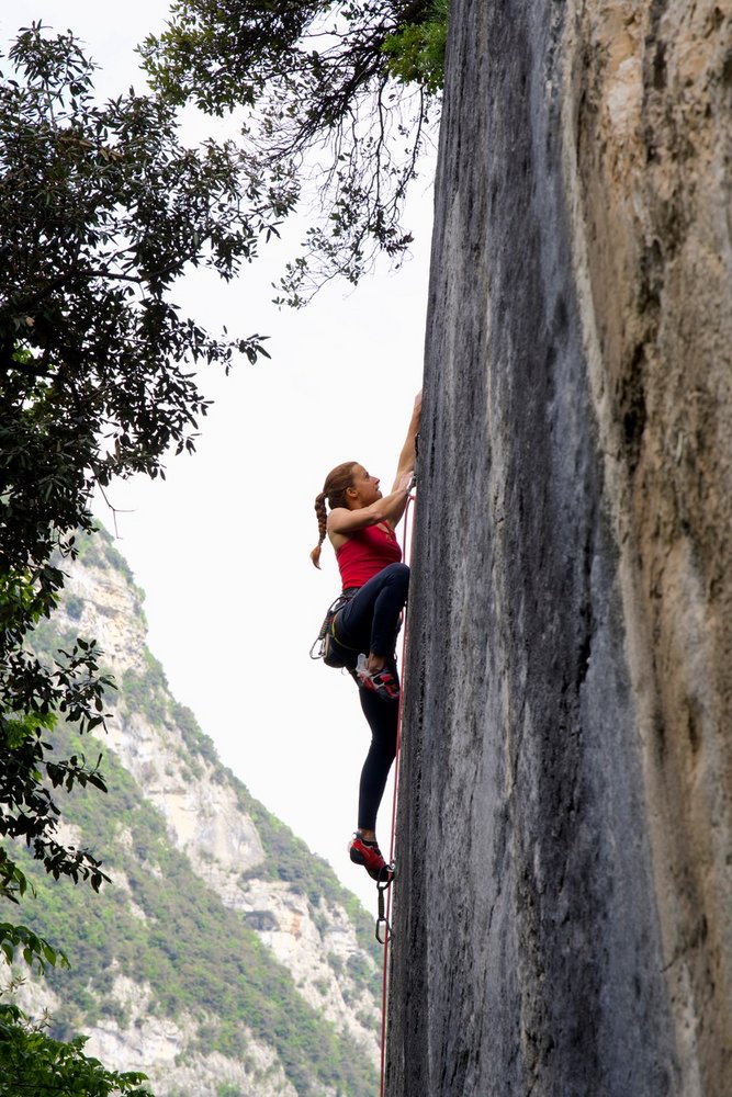 Die Bewegung schien an der Grenze meiner Armspannweite und meiner Fähigkeiten zu liegen. Während Klaas die Route in nur wenigen Tagen eindrucksvoll bewältigte, machte ich weitere Versuche und die Fortschritte stellten sich schneller als gedacht ein. Am achten Tag in der Route konnte ich all die Bewegungen aneinanderreihen, die anfangs so am Limit schienen. Vor zwei Jahren habe ich Solitary Souls geklettert, auch in Arco und in derselben Schwierigkeit. Die beiden Routen könnten nicht unterschiedlicher sein: „Solitary“ ist 35 Meter lang, überhängend und erfordert Ausdauer beim Klettern an Sinter und Löchern, während „Pungitopo“ an winzigen Griffen geklettert wird und die Route kurz und intensiv ist. In den zwei Jahren zwischen diesen beiden Besteigungen hatte ich zwei Verletzungen, es gab Momente des Zweifels und aus diesem Grund bedeutet mir diese Besteigung sehr viel.