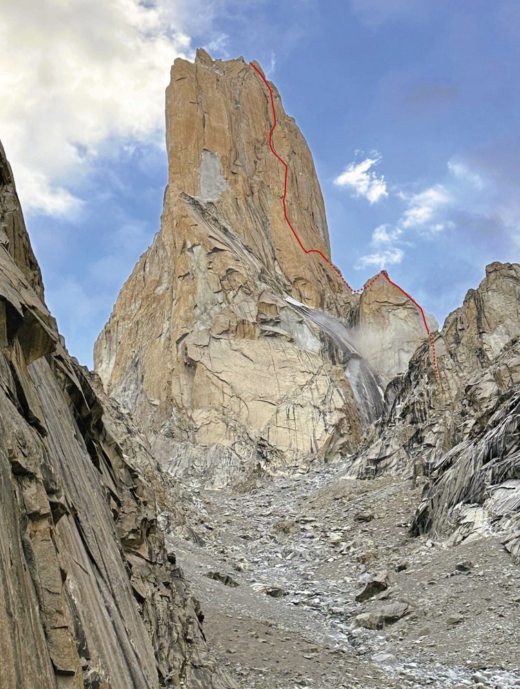 Über den Granitwänden des Karakorum, wo die Gipfel scharf in den Himmel schneiden und der Wind selbst Legenden erzählt, steht der Nameless Tower – 6250 Meter hoch, makellos und furchteinflößend schön. An seiner Südwand zieht sich eine Linie, die seit über drei Jahrzehnten als Symbol des modernen Alpinismus gilt: Eternal Flame. Eine Route, die das Freiklettern in große Höhen trug und bis heute Klettergeschichte schreibt.