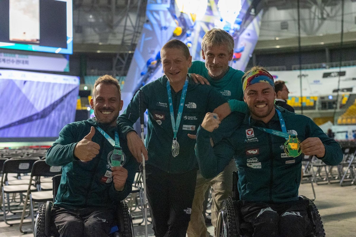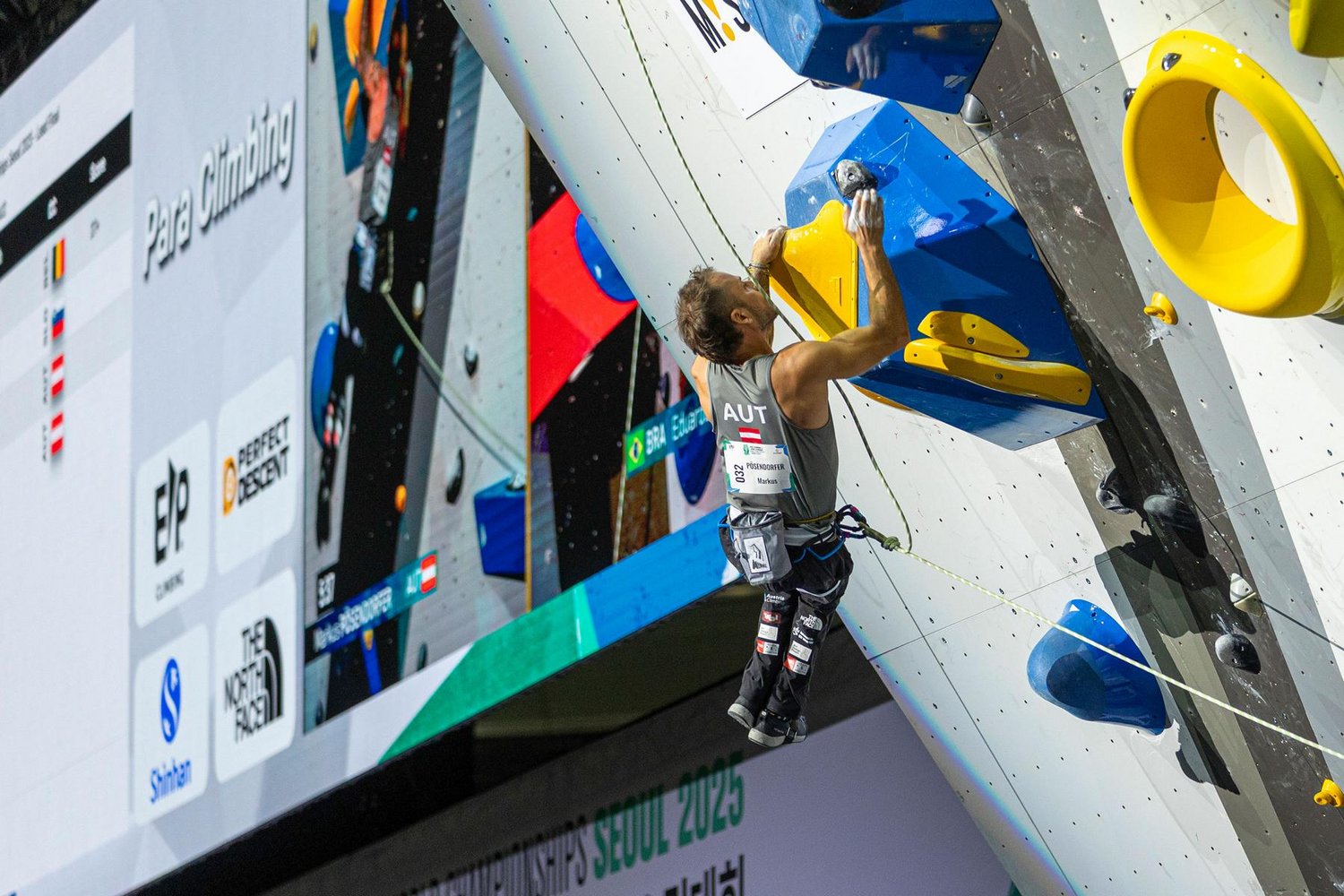 Der 42-jährige Pösendorfer jubelte wie vor zwei Jahren in Bern über Silber. Er setzte sich vor dem Slowenen Matej Arh (47 Griffe) auf Rang zwei. „Dass Athlet:innen aus anderen Kategorien bei uns dabei waren, hat für zusätzliche Anspannung gesorgt. Genial, dass es wie in Bern Silber geworden ist“, freut sich der Steirer. Über Zeller sagt er augenzwinkernd: „Ich bin etwas von ihm enttäuscht, dass er nicht weiter geklettert ist und nur mit fünf Griffen Vorsprung gewonnen hat.“