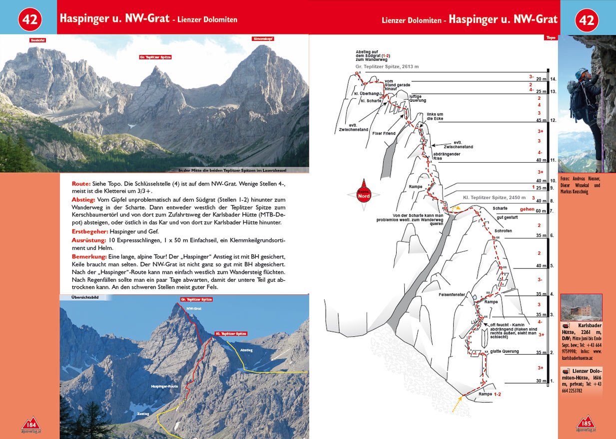 Über 140 Kletterrouten wie die Eisenzeit an der Zugspitze, der 12 Apostelgrat am Säuling, die Blaueisumrahmung, die Dirndl Überschreitung am Dachstein, der Fleischbank Nordgrat, der Gerdasteig an der Roten Wand bei Graz werden genau beschrieben. Das Spektrum reicht von den ganz großen Linien wie eine Watzmann Ostwand, ein Jahn Zimmer im Gesäuse, der Normalweg auf die Große Zinne bis hinauf zu den Gletscherresten, wo ein Stüdlgrat, ein Großvenediger Nordgrat und der Jubiläumsgrat auf schon etwas erfahrenere Alpinisten warten. Es finden sich aber auch viele gut gesicherte Einsteigerrouten in diesem Buch.