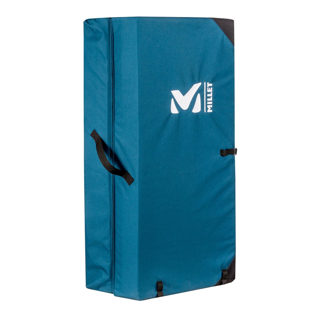 Immer dabei und richtig wichtig: Crashpads gehören in den potentiellen Sturzraum des Boulderers. Sie schonen die Gelenke beim Absprung und sollen vor Verletzungen bewahren. Millets neues robust verstärktes ROCK LAND PAD ist aus schockabsorbierendem Polyethylen-/Polyurethanschaum. Es bietet eine Fläche von 1x1 Meter, zur Hälfte zusammengeklappt und mit drei Metallschnallen geschlossen, lässt sich das nur 3,54 kg schwere Pad einfach auf den Rücken schnallen und überall dorthin mitnehmen, wo zusätzliche Sicherheit gefragt ist. Kostenpunkt: 169,90 Euro.