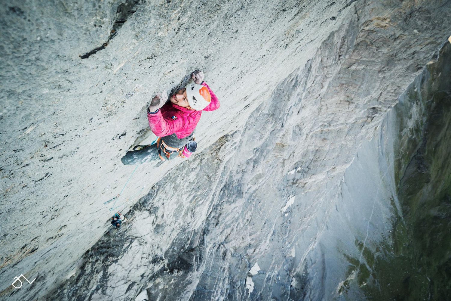 Simon Welfringer in der Route Paciencia - Eiger Nordwand (c) Damien Largeron / Millet
