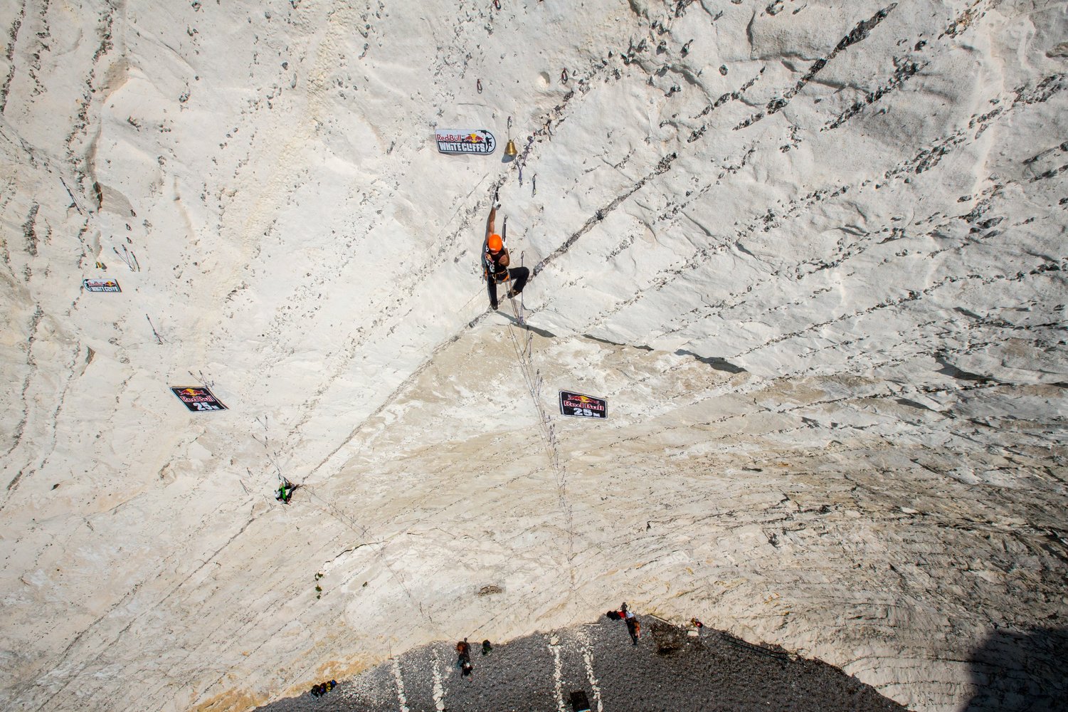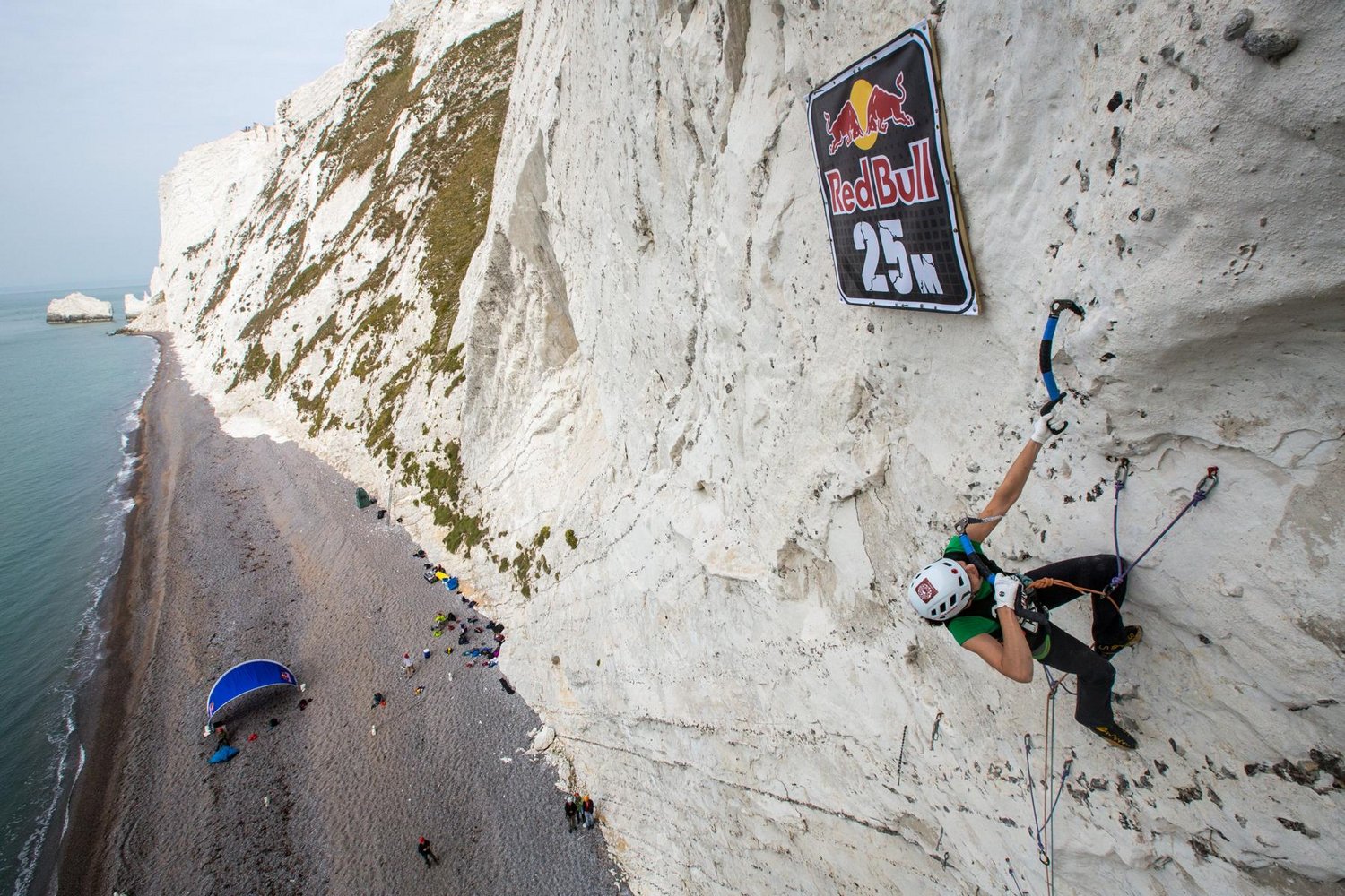 Emmett und Rainer gewinnen den Red Bull White Cliffs Drytooling Wettkampf auf der Isle of Wight