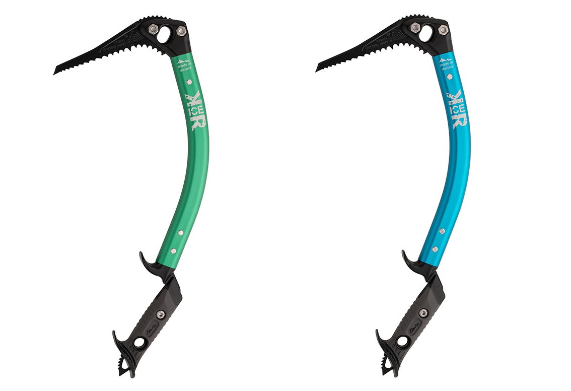 Der K.ice.R ist anders und zeichnet sich vor allem durch die in der Neigung verstellbaren Hauen aus. Quasi mit einem Zahnradsystem lässt sich der Klingenwinkel in fünf verschiedene Positionen bringen, ob jetzt im flachen Schneegelände einer Nordwandtour oder im krassen Gegensatz dazu eine überhängende Mixedroute - man kann die Haue des K.ice.R je nach Bedarf in die für die nötige Kraftübertragung gewünschte Stellung bringen. Für den K.ice.R gibt es 3 verschiedene Hauen (Klingen): eine Eisklinge (läuft vorne auf 3 mm zusammen), eine Mixedklinge (schnabelförmige Spitze) und eine Hohlhaue (mit geringer Sprengwirkung für anspruchsvolles Eis - aktuell einziges Steileisgerät mit Hohlhauen-Option).