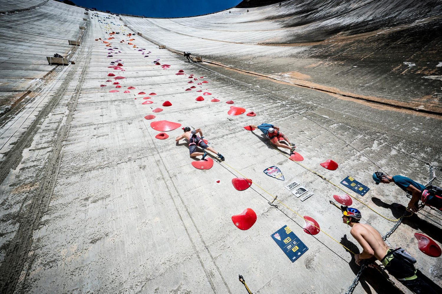 Bei diesem einzigartigen Kletterwettbewerb treten 24 der weltbesten Kletterer verschiedener Disziplinen in 12 gemischten Teams gegeneinander an. Die 180 m langen, identischen Routen bis 8b liegen direkt nebeneinander und führen bis ganz nach oben auf den Verzasca-Staudamm. Der Damm wurde bereits im James-Bond-Blockbuster „Goldeneye“ gezeigt, in dem Bond seinen Bungee-Sprung genau dort vollzieht, wo die Kletterer nun versuchen werden schnellstmöglich hinaufzugelangen.