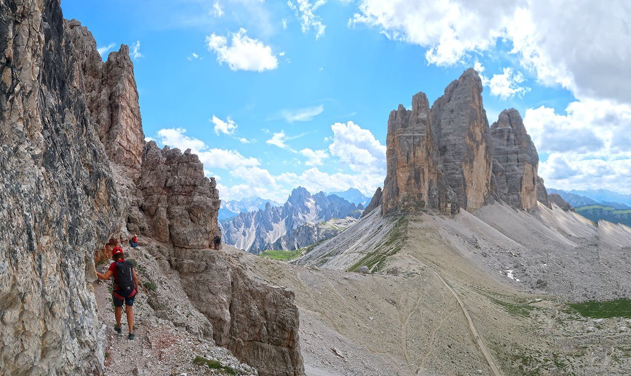 Die Drei Zinnen zählen zu den beeindruckendsten Felsformationen der Dolomiten. Klar, dass man hier auch mal auf dem Gipfel stehen möchte. Die höchste Punkt der Tre Cime ist die Cima Grande, die auf unzähligen Kletterrouten von allen seiten aus erreicht werden kann. Durch die rund 500 Meter und absolut senkrechte Nordwand ziehen nur schwierige Kletterrouten, von denen die Comici die leichteste und auch berühmteste ist.