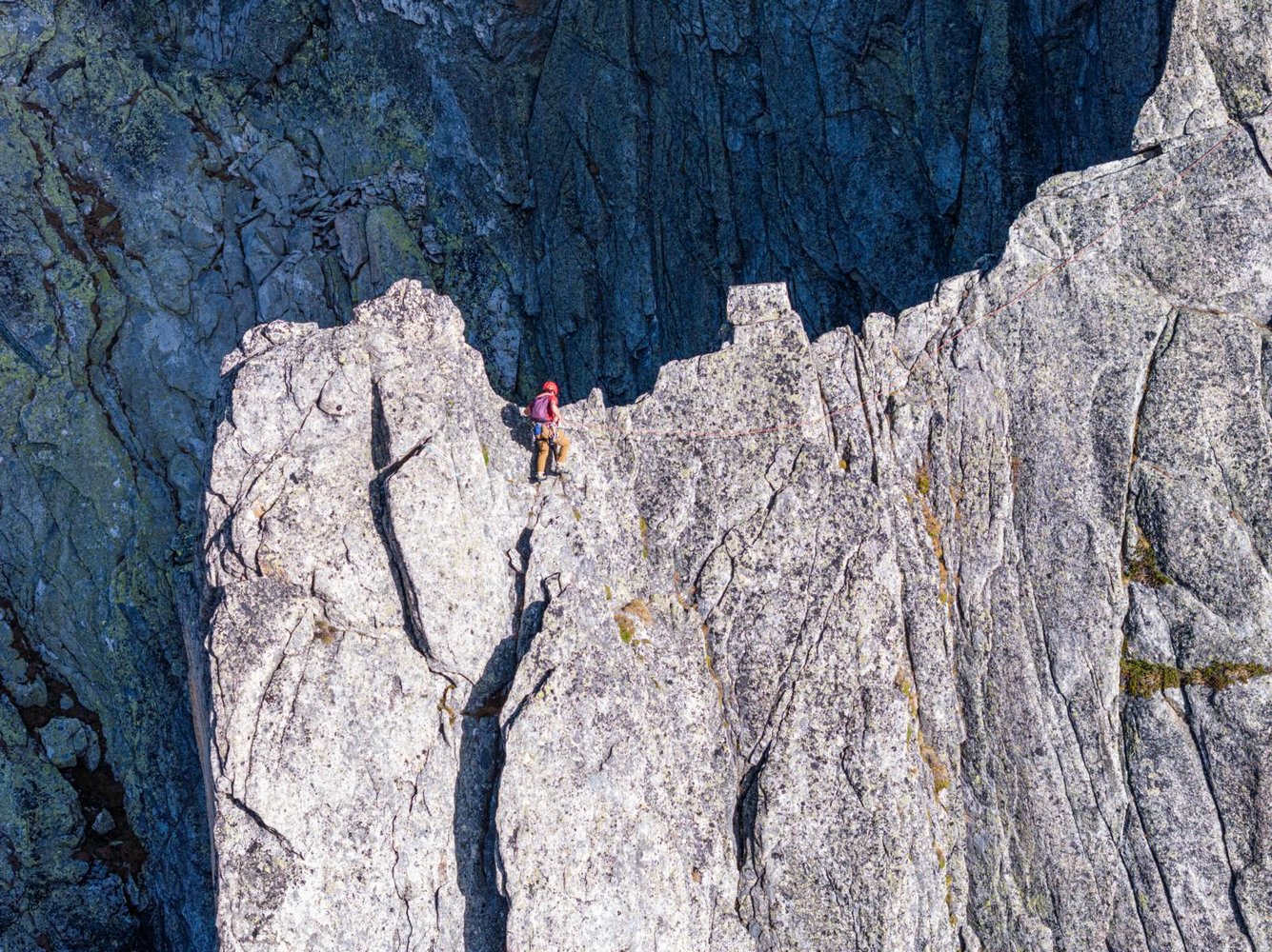 Die Taktik des simultanen Kletterns mit regelmässigem Wechsel im Vorstieg erlaubte es ihnen, schnell und effizient vorwärtszukommen. Wenn der eine im Vorstieg war und Entscheidungen treffen musste, konnte sich der andere mental erholen und einfach der Kletterlinie folgen. Nach 1 Stunde und 52 Minuten waren sie bereits auf der Gipfelnadel und konnten somit als erste Seilschaft den Grat unter zwei Stunden klettern.