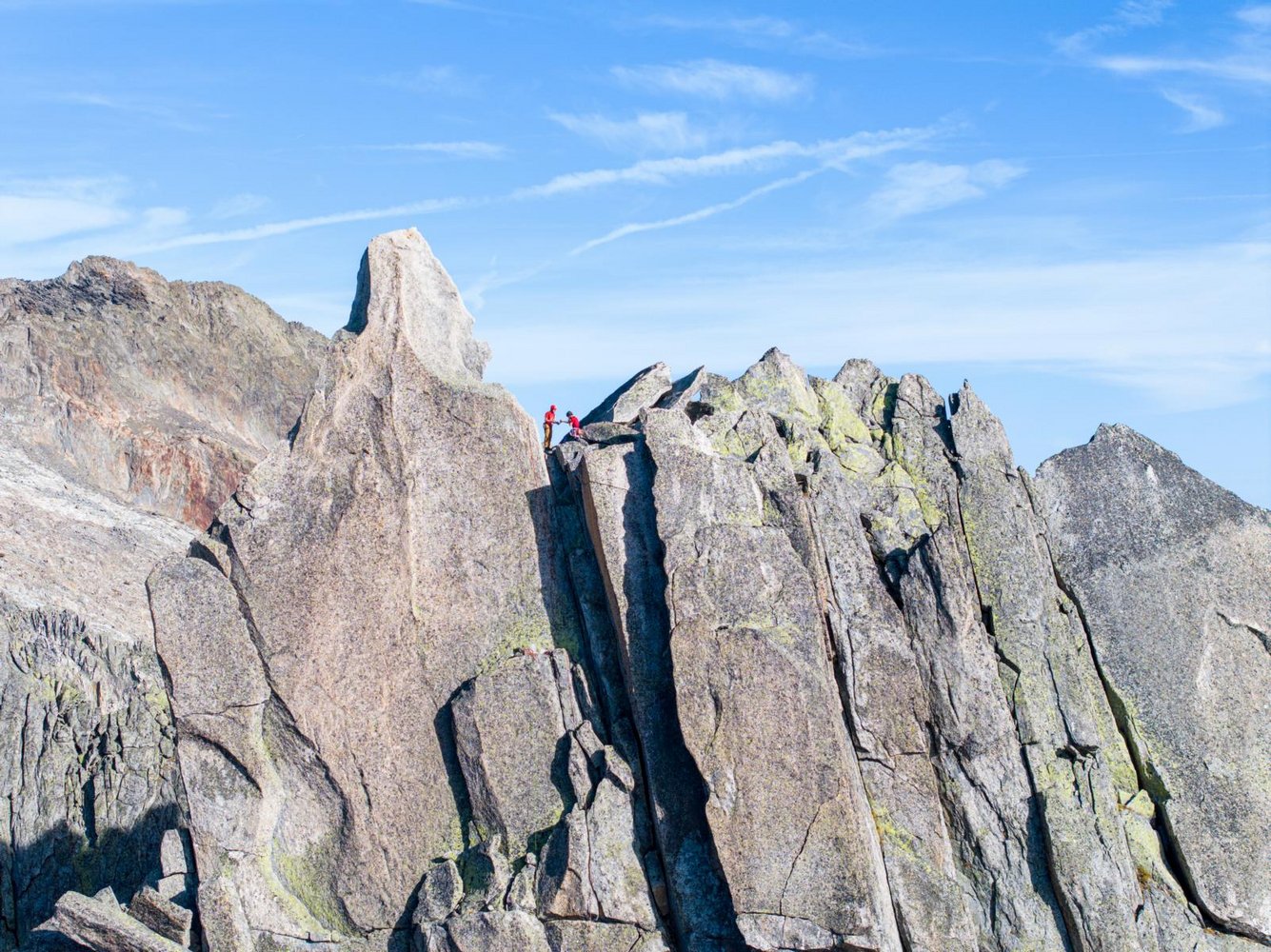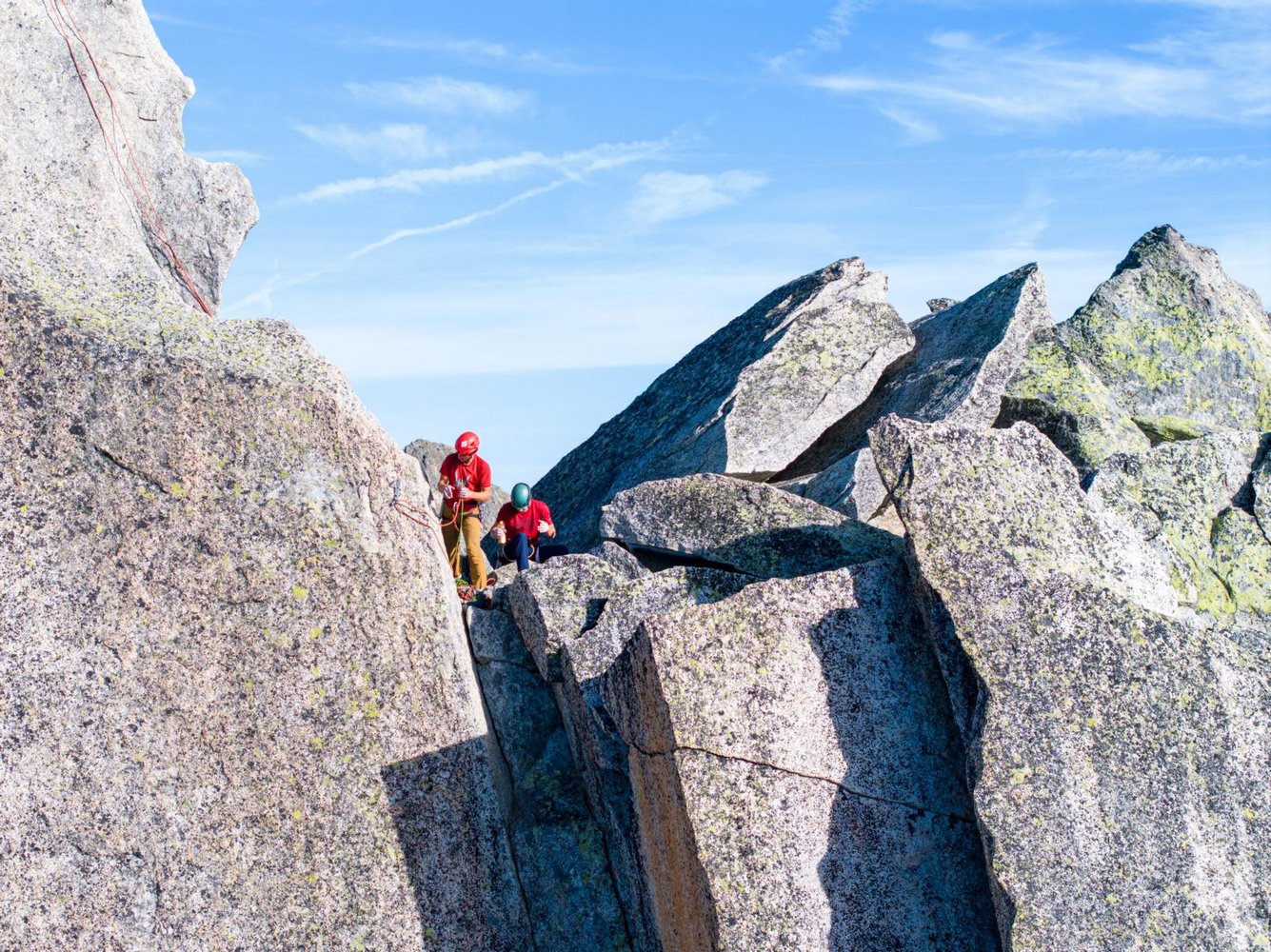 Der Dienstag, 3. Oktober wurde dem Salbit-Westgrat gewidmet. Dieser ist von der Schwierigkeit, Länge und den technischen Anforderungen der anspruchsvollste. Gleich im Anschluss kletterten sie den unteren Teil des Südgrats. Für die heiklen Kletterpassagen wurde Technik und Strategie im Vorfeld besprochen und entschieden, um später die maximale Sicherheit bei minimalem Zeitverlust sicherzustellen.