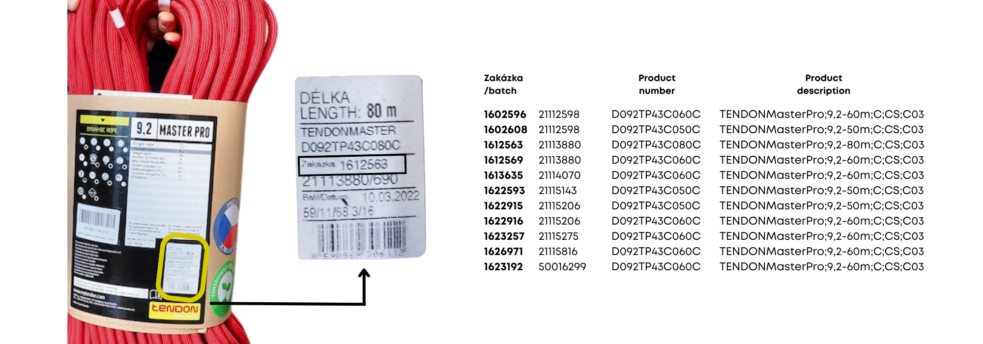 Sollten Sie ein Seil der unten genannten Charge besitzen, schreiben Sie uns bitte an: jiri.gazda@mytendon.com. Wir werden uns mit Ihnen in Verbindung setzen und das Seil durch ein neues ersetzen.
