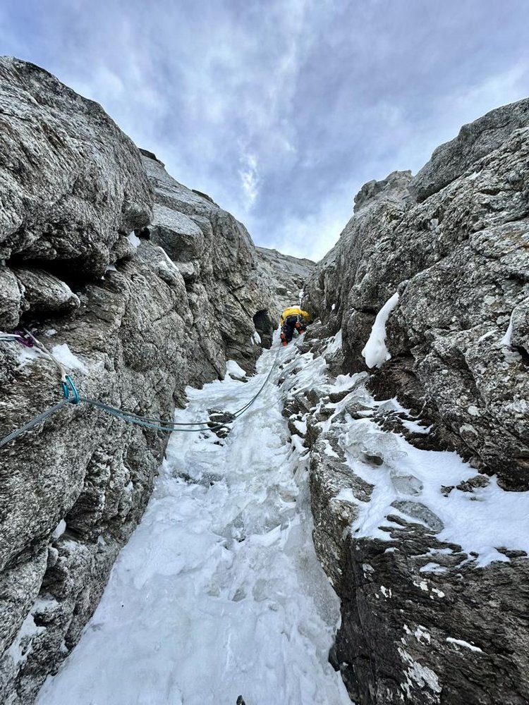 They had to deal with temperatures down to -22 degrees and called the adventure one of their hardest outings so far. Martin Feistl and Amelie Kühne tried the route in March 2022 entering on the direct and more or less original starting point but couldnt finish the route and bailled on the second day. Martin Feistl mobilised Simon and me to join him on the route and we planned to do that when conditions allow.