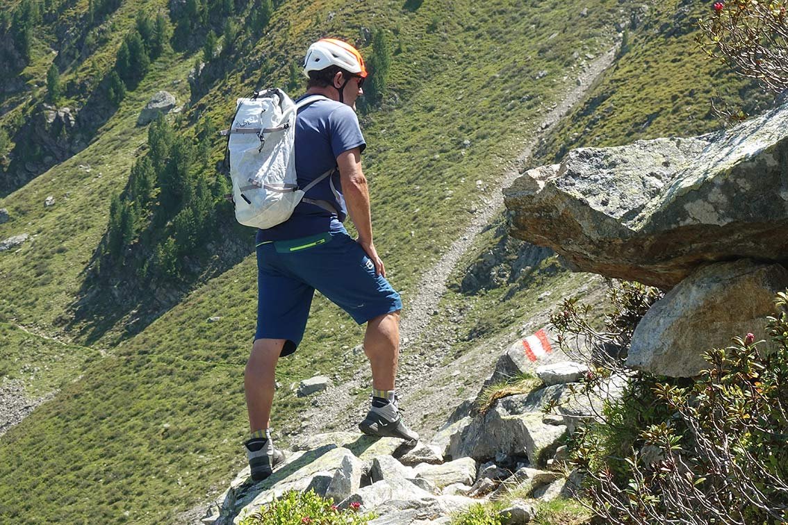 Wir sind wirklich sehr gerne mit dem Alpha SL 30 unterwegs, egal ob Mehrseillängentour, Hochtour, Klettersteig mit MTB-Zufahrt oder bei kurzen Touren in Arco. Man muss sich an ein paar Sachen gewöhnen und gewisse Dinge im Auge haben (Zurrgurte) und das glatte Dyneema-Material rutscht auch im Schnee einen Tick besser (also Achtung, wenn man den Rucksack bei der Hochtour kurz ablegt) - diese Sachen hat man aber schnell im Griff und dann eben nur 436 Gramm auf dem Rücken. Bei längeren Touren wird man quasi eins mit dem Alpha SL 30, da drückt einfach gar nichts und der Rucksack ist sehr gut in das Gesamtpaket (Klettergurt, Seil, Helm) beim Bergsteigen/Klettern integriert.