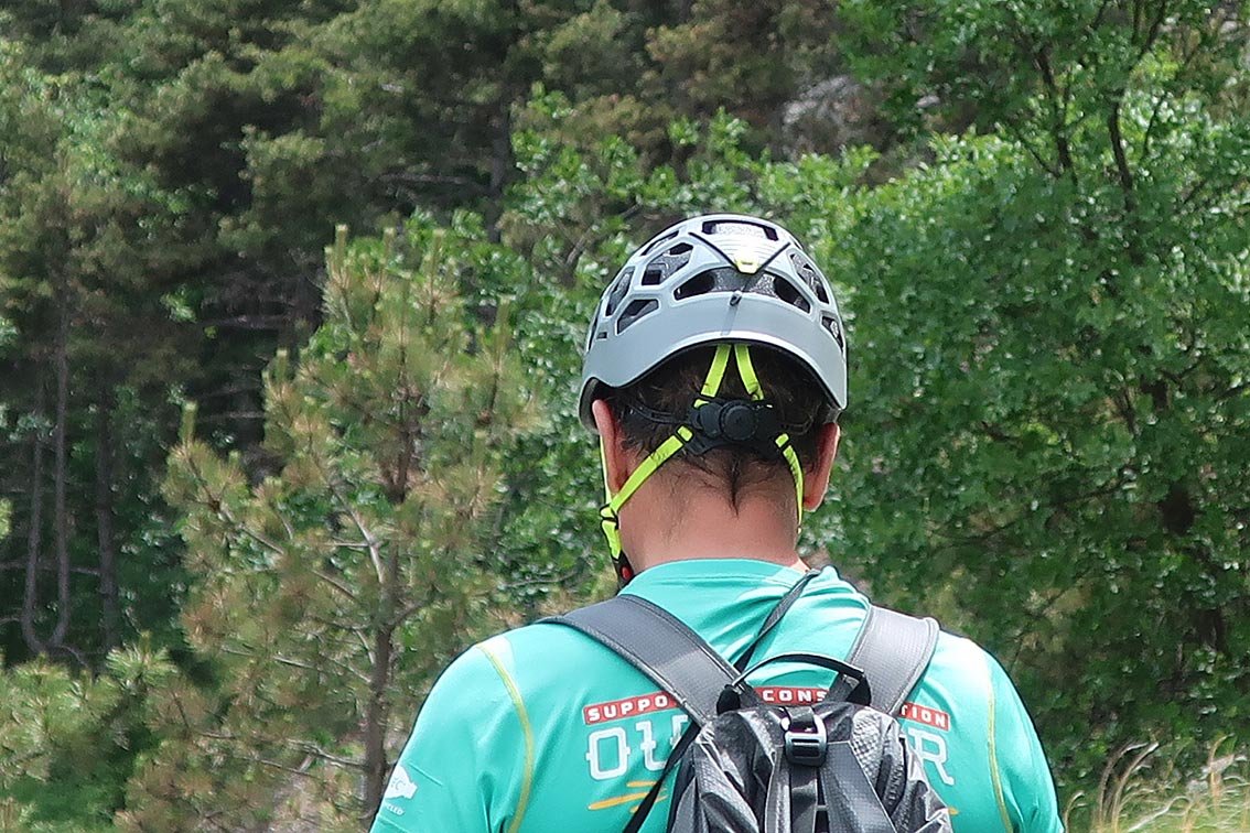 Die vielen Lüftungsöffnungen sind so klein und von der ABS Außenschale geschützt, dass kein Stein durchkommt, spenden aber gleichzeitig an heißen Tagen viel Luft. Innen ist der Ikon-Helm weich gepolstert und die Polsterung kann auf Wunsch auch an die Kopfform angepasst bzw. verstärkt werden. Besonders praktisch das Verstellrad am Hinterkopf, mit dem sich der Ikon-Helm – auch während der Tour! - nur mit einer Hand sehr gut auf jede Kopfbreite anpassen lässt. Die seitlichen Riemen lassen sich beim Ohr und Kinn verstellen und sorgen dafür, dass der Helm fest sitzt. Die Passform des Camp Ikon-Helms ist mit diesen einfachen und sehr effizienten Verstellmöglichkeiten sehr gut!