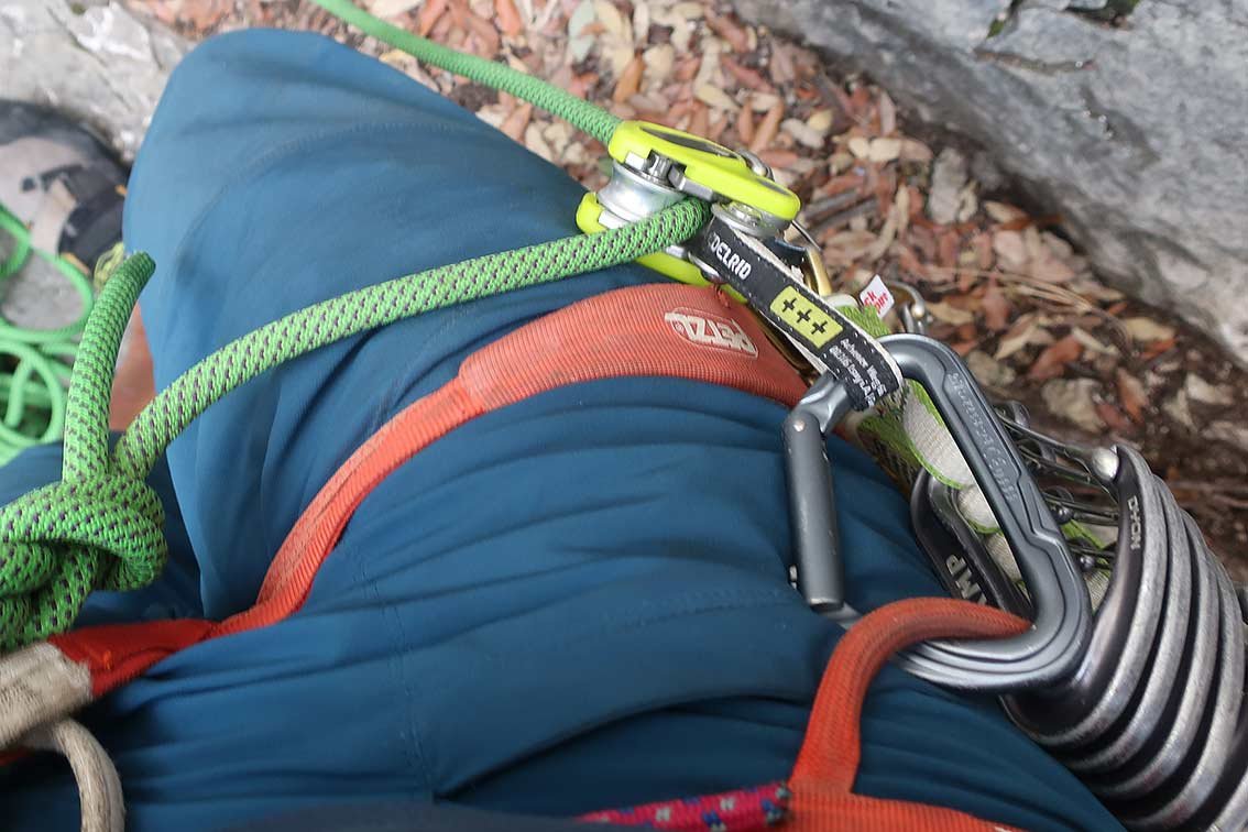 Das Ohmega ist aber auch ein richtig guter Pluspunkt für nicht so versierte Sicherer. Wir setzten es oft beim Mehrseillängenklettern ein, da es nur unwesentlich mehr wiegt als eine Expressschlinge und nehmen so dem Sichernden im Sturzfall einfach mehr Energie. Auch Anfänger sind z.B. im Klettergarten oder der Halle froh, wenn sie weniger Sturzenergie auffangen müssen. Wir als Vorsteiger fühlen uns auch einfach einen Tick sicherer, wenn zwischen uns und dem nicht so fitten Sichernden ein Ohmega zwischengeschaltet ist.