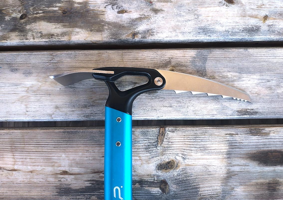 Von der Konstruktion her sieht man den sehr leichten, kurzen Alupickel relativ oft auch auf recht anspruchsvollen Touren in den Westalpen. Solange die Firnauflage da ist, gibt es dagegen nichts auszusetzen, sobald das Eis aber blank unter dem Schnee hervorblitzt, greift man auch beim Pickel besser zu einer Stahlhaue, welche einfach viel besser ins Eis dringt.