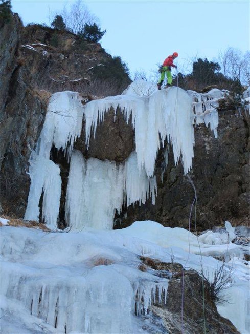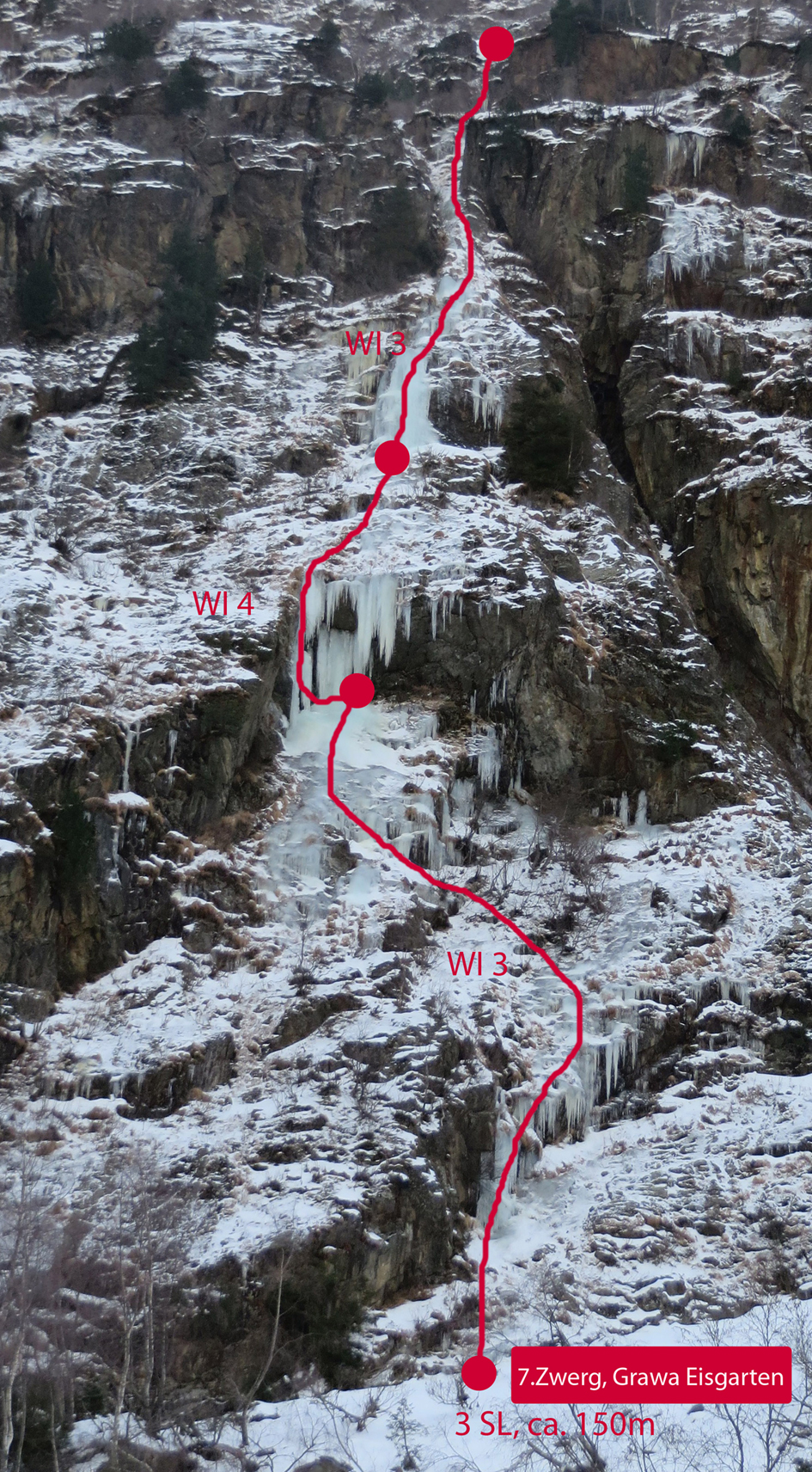 Diese Tour verläuft links vom Botanikerkamin- Schwierigkeiten wechseln je nach Eisbildung. Der Einstieg ist im rechten Teil des Eisgartens, links neben der Rinne des Botanikerkamins.