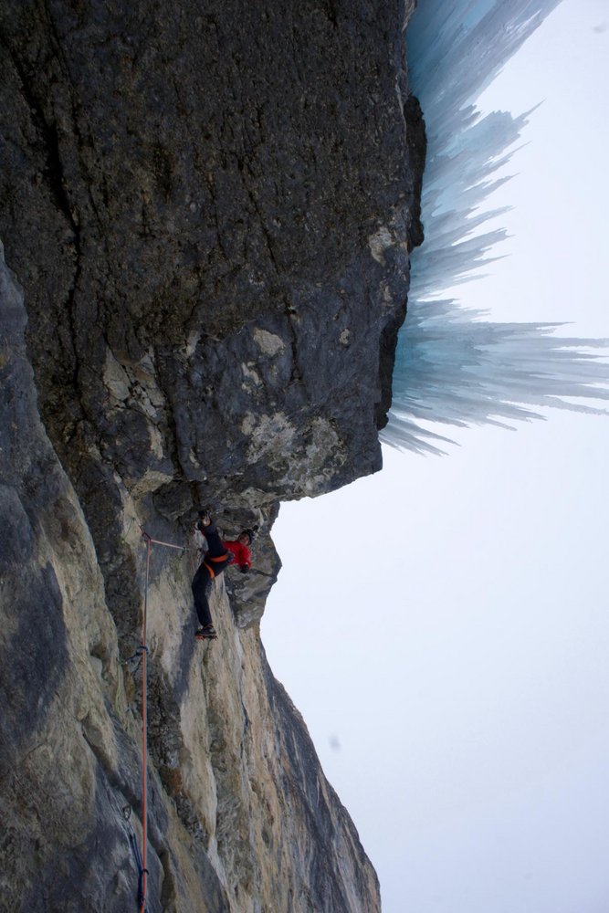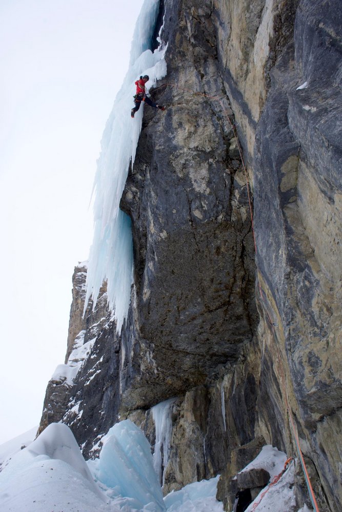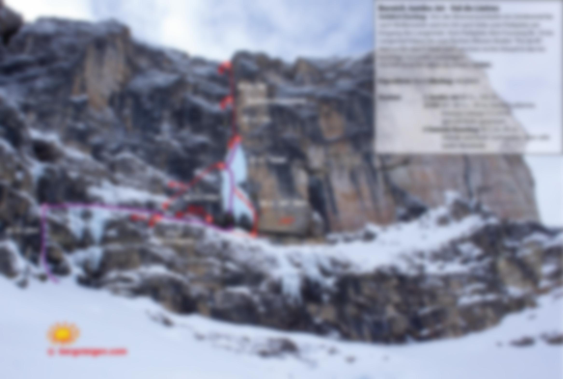 Die Route wurde Eingerichtet, dass man auch bei wenig Eis oder wenn die Kerze der Route Jumbo Jet kolabiert ist, den Wasserfall immer klettern kann. Eingerichtet von Daniel Ladurner von unten mit Borhaken und Nägel. Absicherung super. Insgesamt ist die Route mit der Zustiegsseillänge (WI4) ca 110m lang, wobei der Felsteil ca 25m lang ist. Kletterei in einer Verschneidung an feinen rissen.