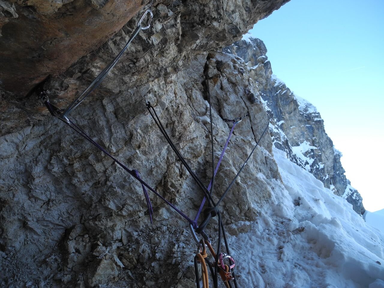 Die Tour wurde clean erstbegangen. Es wurde eine Sanduhrschlinge in der Schlüsselseillänge belassen. Bei technischer Kletterei kann ein Birdbeak in der Schlüssellänge von Nutzen sein. Bei Rotpunktambitionen empfiehlt sich einen kompletter Satz C4 0,3 bis 4, wobei die Größen 0,5 bis 1 doppelt mitgenommen werden können. Der ein oder andere Stand kann mit einem Normalhaken verbessert werden.