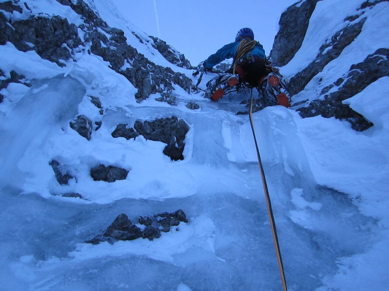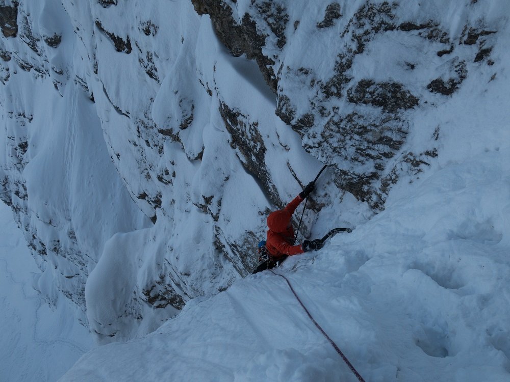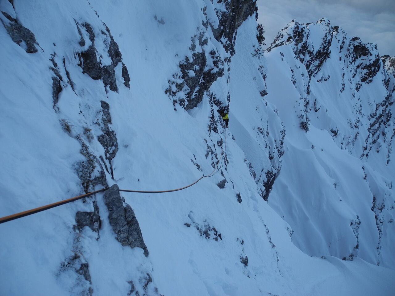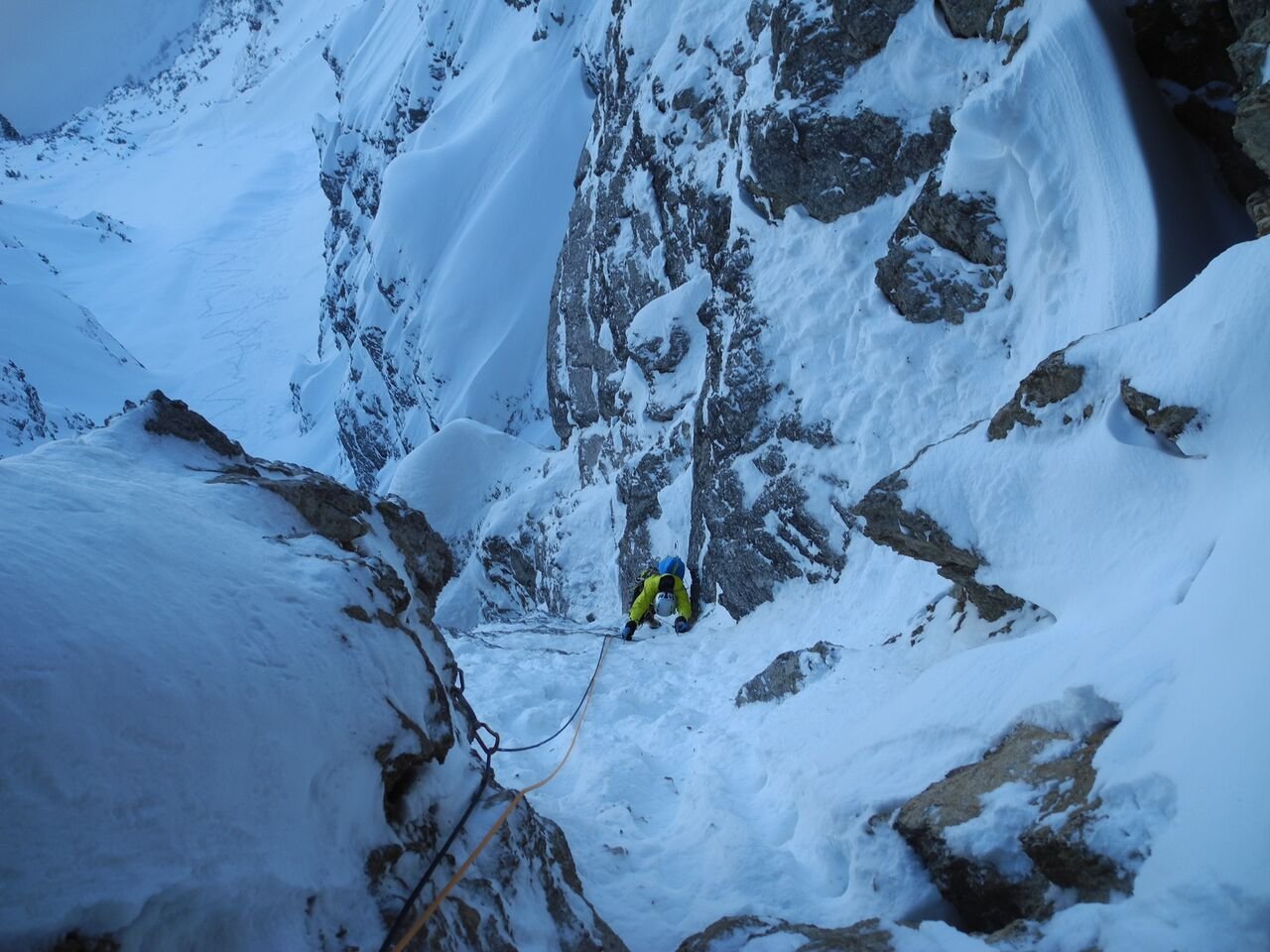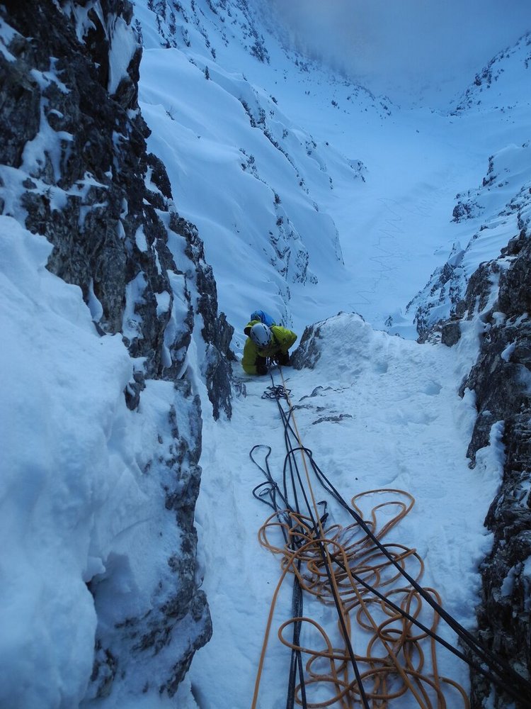 Neu entdeckte Winterroute gleich neben dem "Midwintergully". Trotz des langen Zu- und Abstiegs ist die Tour nicht zuletzt aufgrund ihres Neuland- bzw. Abenteuercharakters jede Mühe wert.