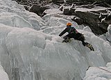 Unten kurz schwer, dann um WI 4. Wenn das Eis ganz schlecht ist evtl. schwerer (im Führer ist er mit 6/6+ bewertet, dies scheint aber etwas übertrieben).