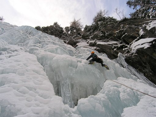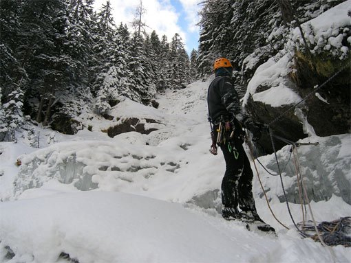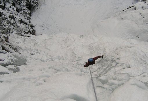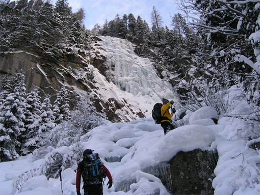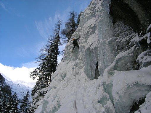 Unten kurz schwer, dann um WI 4. Wenn das Eis ganz schlecht ist evtl. schwerer (im Führer ist er mit 6/6+ bewertet, dies scheint aber etwas übertrieben).