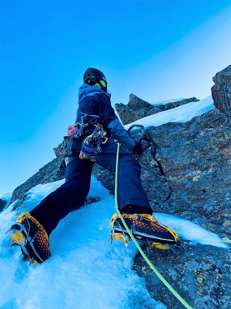 (Alternativ bei viel Schnee über die Ostrinne absteigen (2x Abseilen) und direkt zurück zum Einstieg