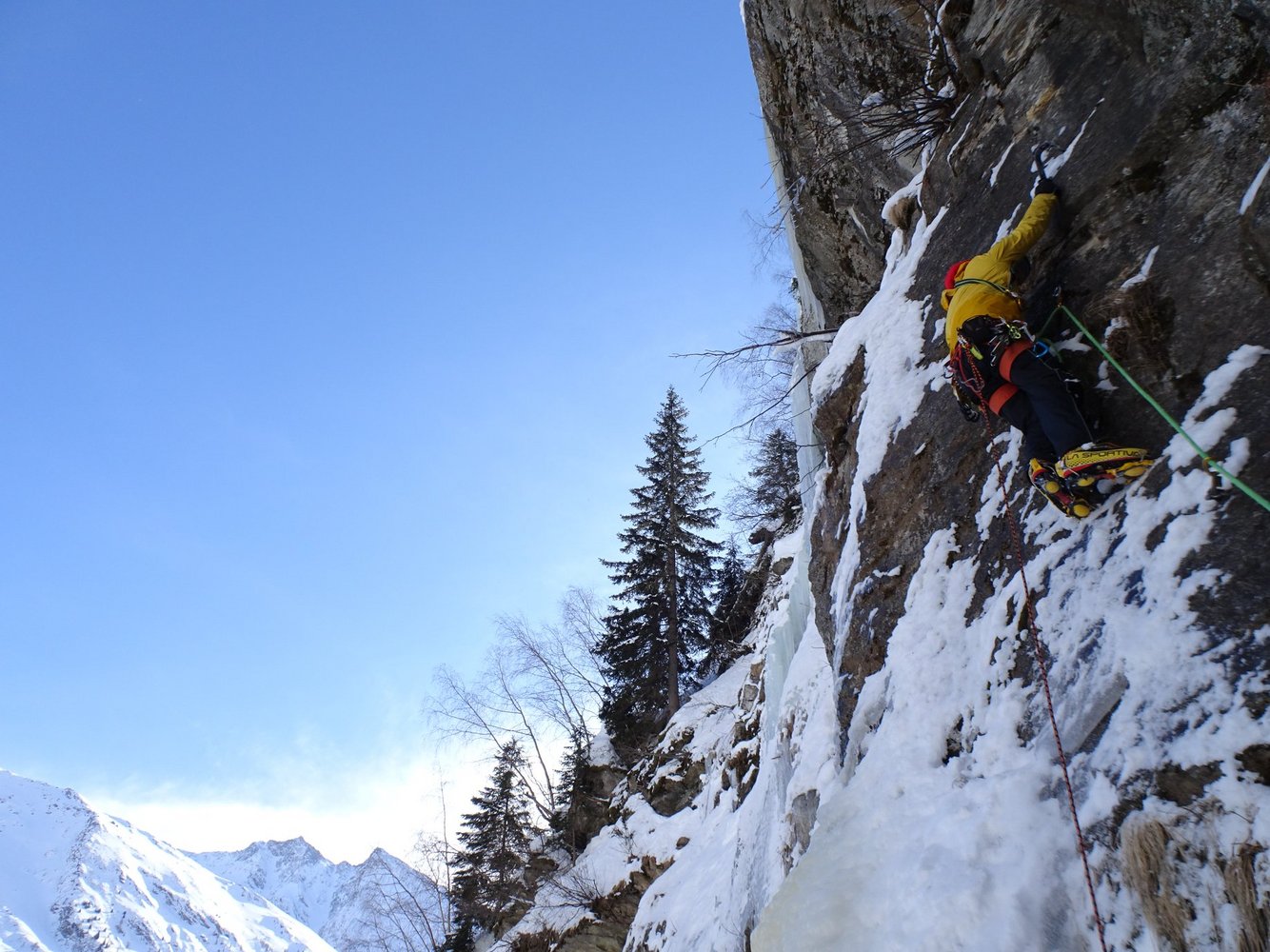 Die Route befindet sich an den Steinwandfällen, zwischen Homozack und Rechten Steinwandfall. Eine kurze, nette Mixedlänge führt zum Beginn des steilen Daches. Athletische Kletterei an guten und teils schlechten Hooks führen zum dünnen Zapfen nach rechts oben. Die Eislänge ist nochmal steil und exponiert.