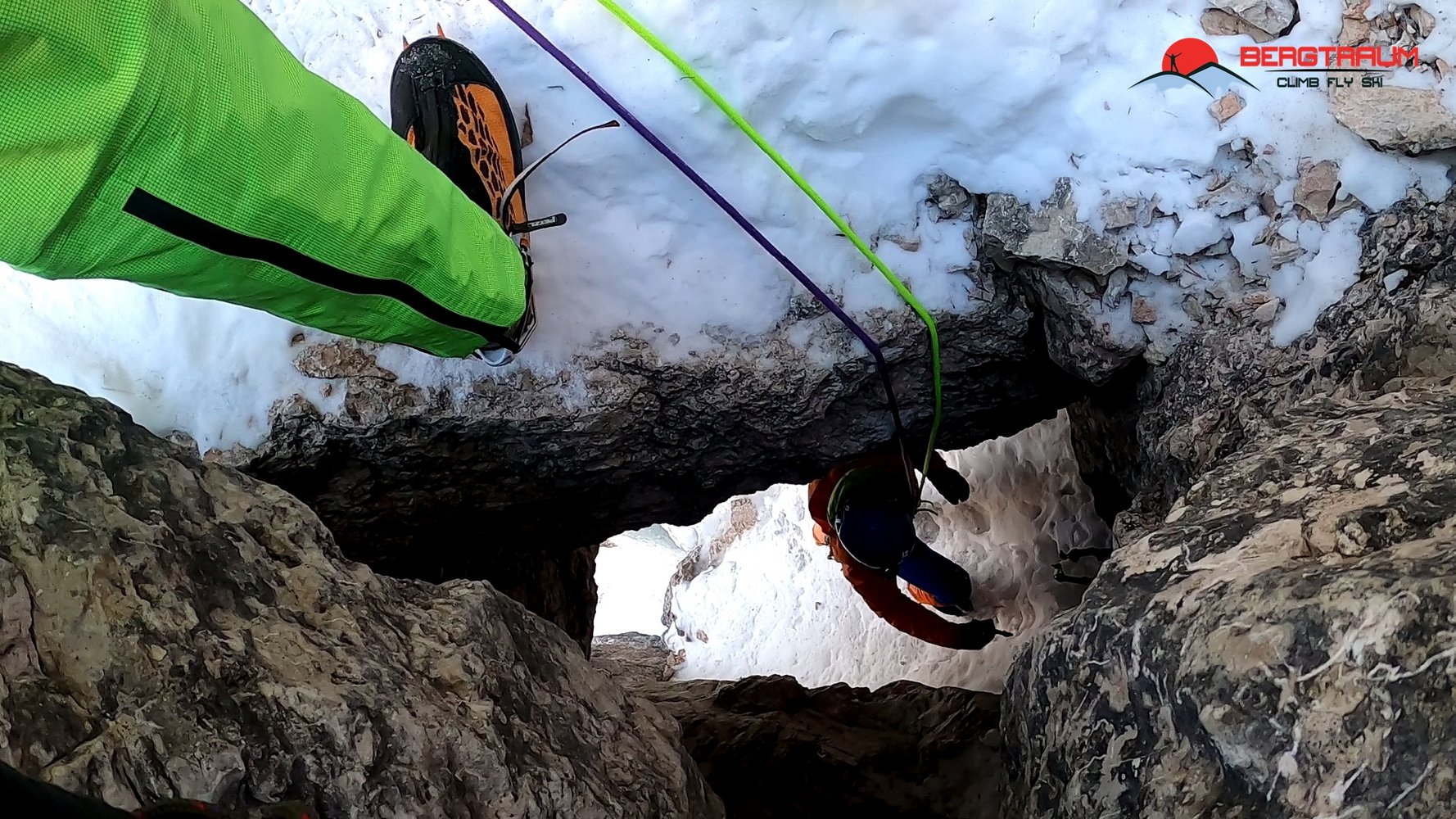 Gesamt 5 SL: L1: WI 4+, 60 m. L2: WI 2, 100 m. L3: WI 4+, 50 m. L4: WI 2, 40 m. L5: WI 4, 50 m.