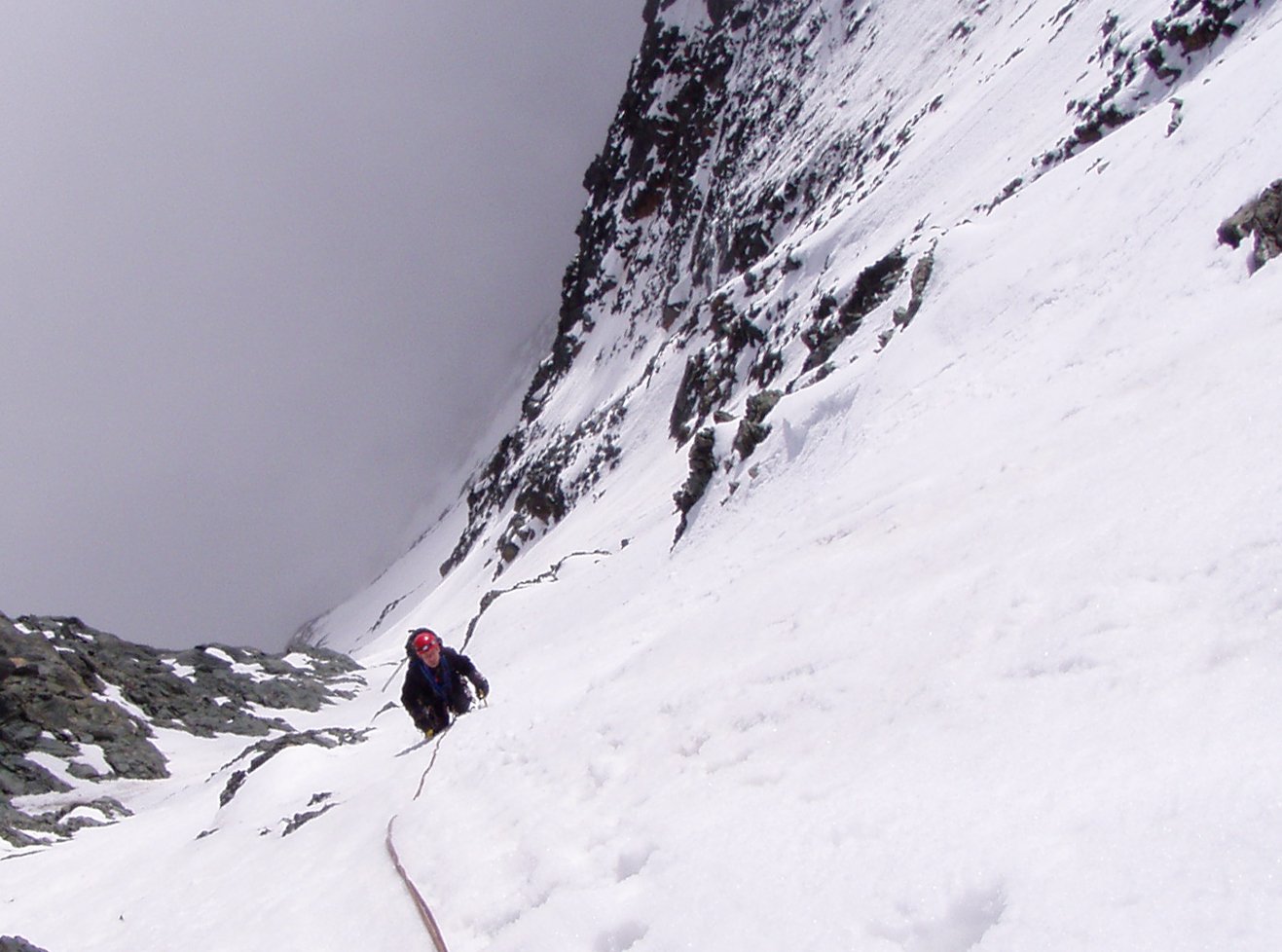 Danach über den NW-Grat (140 m langer Gratanstieg, der bei Schneelage nicht zu unterschätzen ist) zum Gipfel.