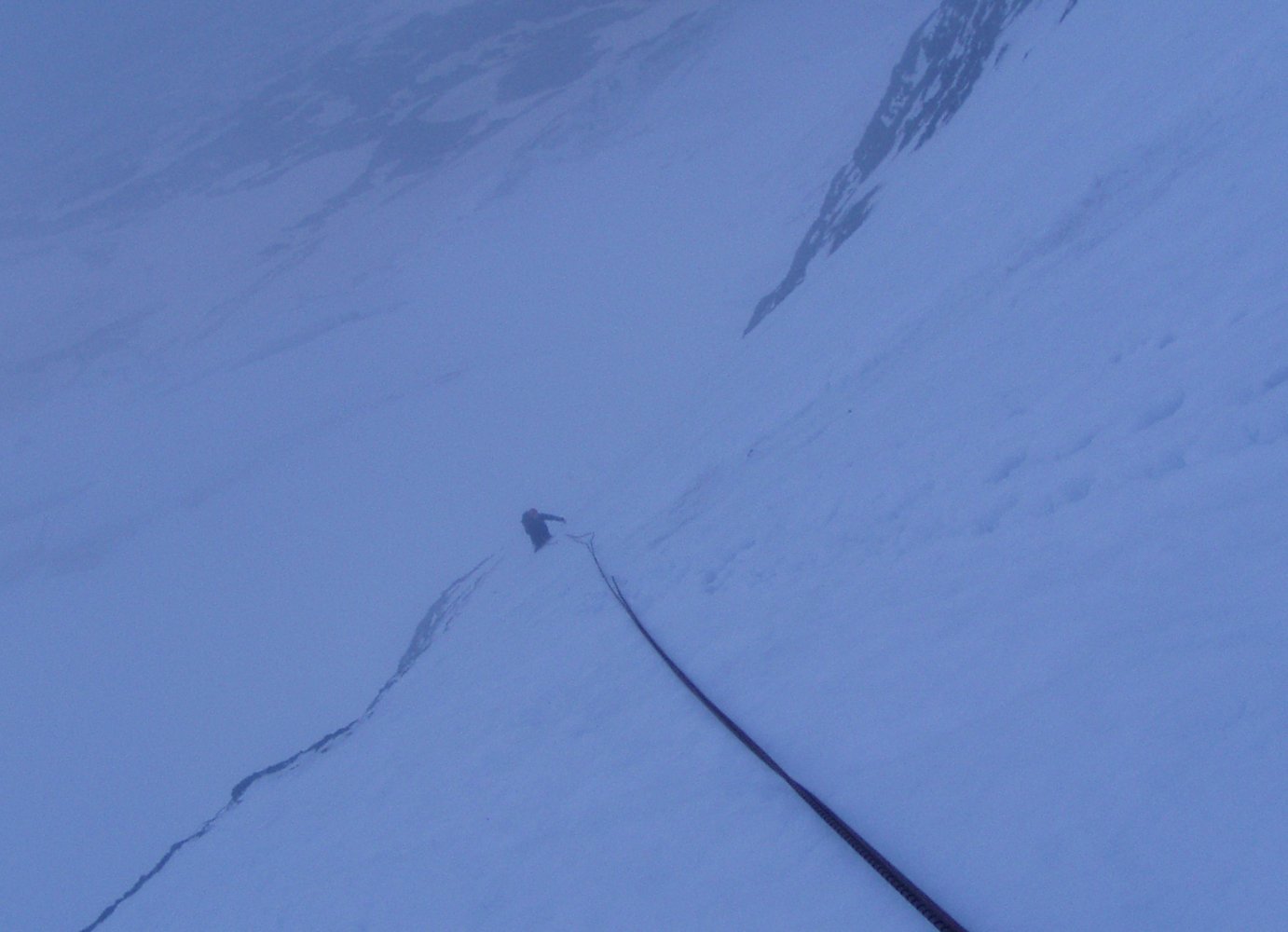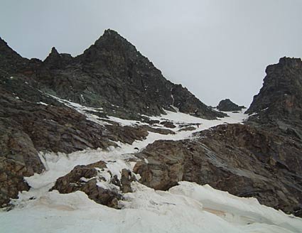 Man kann auch von der Grögerschneid über die "Grögerrinne" 40 - 45° und danach über das Teischnitzkees zur Stüdlhütte absteigen - also von der Grögerschneid über steile Firnfelder nach Süden hinunter.