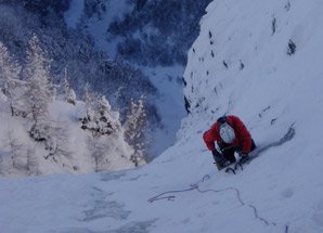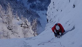 Anspruchsvolle Eiskletterei, die die volle Palette des eiskletterischen Könnens verlangt.
