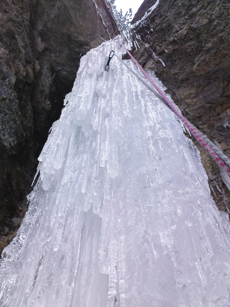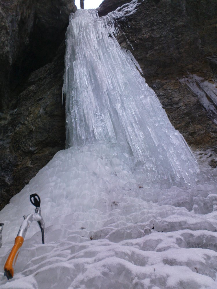 1.SL(45m): WI5+ Säule (bei schlechter Eisbildung deutlich schwerer!),