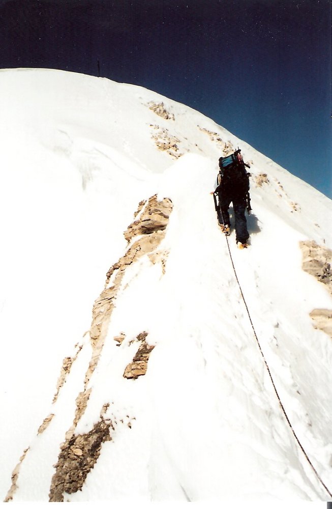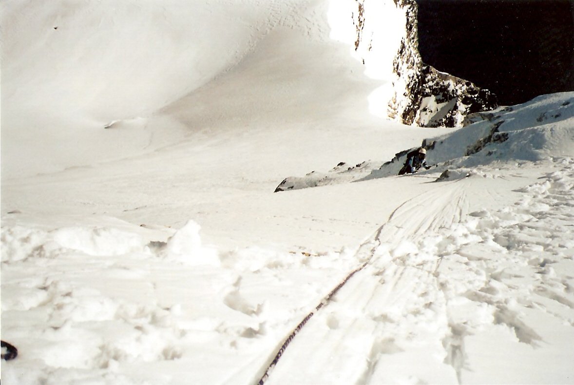 Relativ kurze, aber steile Eiswand, die nach oben hin immer steiller wird. Vom Visper- und Mattertal her sehr eindrucksvoll anzusehen. Bis in den Frühsommer hinein findet die Wand stets ihre Begeher, doch kann man bei ihr kaum von einer "Modetour" sprechen. Das liegt vielleicht auch daran, dass die Wand nach schneearmen Perioden im obersten Teil, später auch in Einstiegsnähe zur baldigen Ausaperung neigt, was eine Begehung nicht empfehlenswert macht. Besonders die Steinschlaggefahr ist dann drastisch erhöht. Zu- und Abstieg sind dagegen mit keinen nennenswerten technischen Schwierigkeiten verbunden.