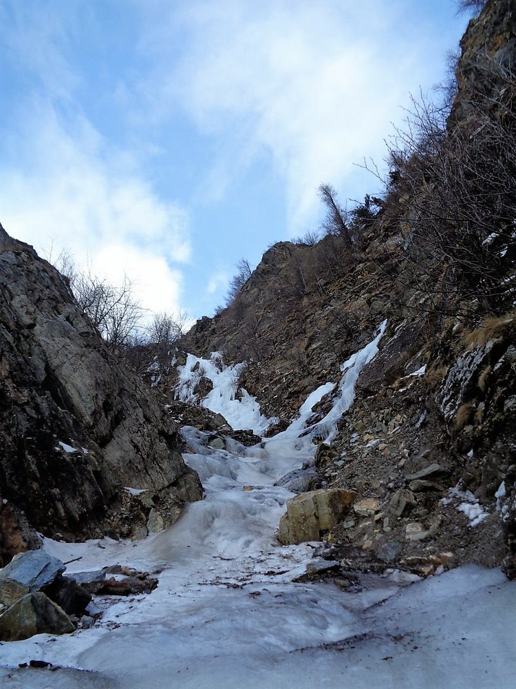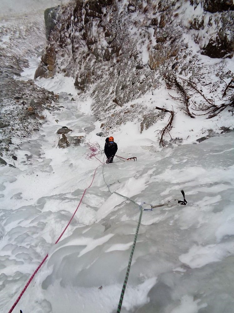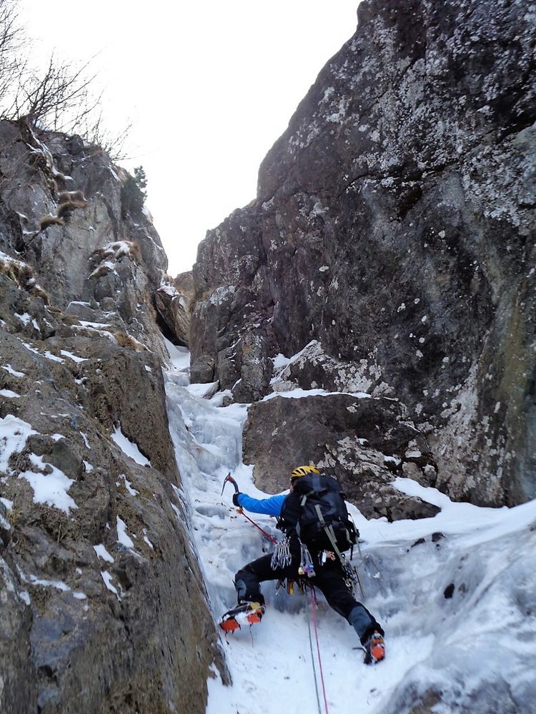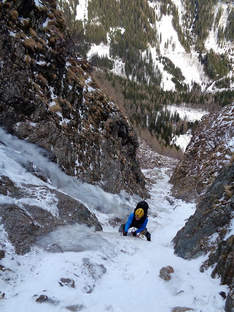 Vom Parkplatz nach Süden, über die Brücke, bis man auf eine Lichtung gelangt (ca. 450m). Dann für weitere 500 Meter in westlicher Richtung auf einem Forstweg, bis man den Wasserfall bereits einsieht. Nun in südwestlicher Richtung über die Wiese hoch zum Einstieg des Wasserfalls. Hier Depot machen.
