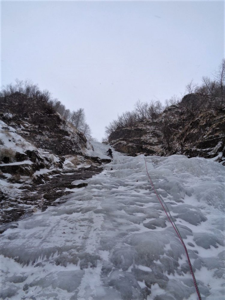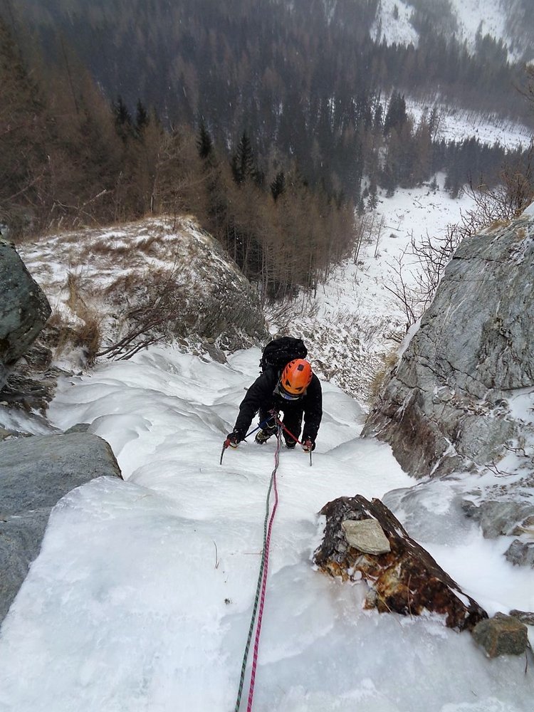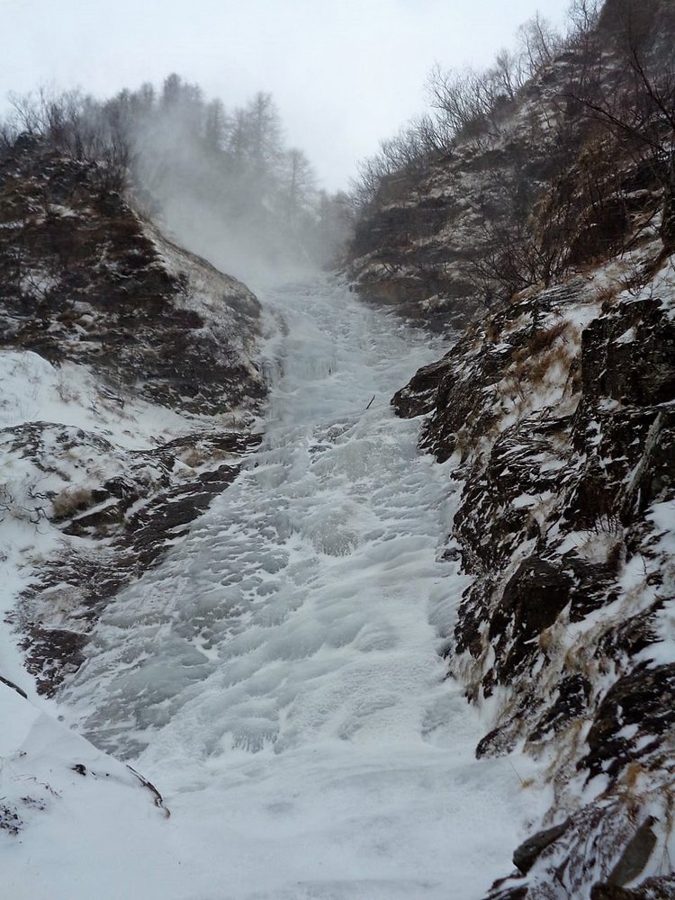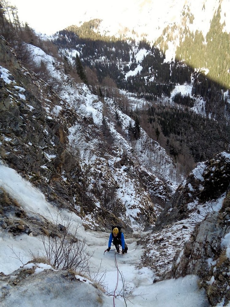 Der Bussardwaldfall bietet kein Wasserfallklettern im eigentlichen Sinn. Es ist vielmehr eine Kette kleiner Aufschwünge entlang eines Bachbetts, hat aber dennoch alpinen Charakter. Der Wasserfall teilt sich in zwei Arme, wobei die linke Variante etwas schwieriger als die Rechte ist. Gerade für Eiskletteranfänger bietet es sich hier an, die ersten Schritte im Eis zu machen. Auch wenn die technischen Schwierigkeiten nicht allzu hoch sind, sollte man den Fall nicht unterschätzen: Die Lawinengefahr ist zu beachten und das Absteigen/Abseilen über die Tour ist anspruchsvoll.