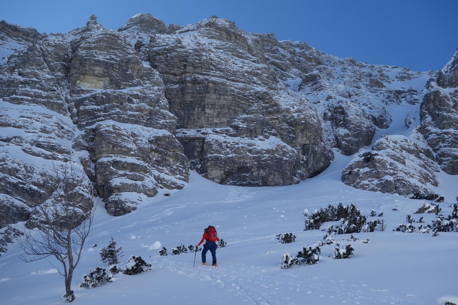 Begangen von Martin und Stefan Feistl, 24.03.2018. Informationen über weitere (ggf. sommerliche) Begehungen fanden sich weder in alten AV-Führern noch in den endlosen Weiten des www.