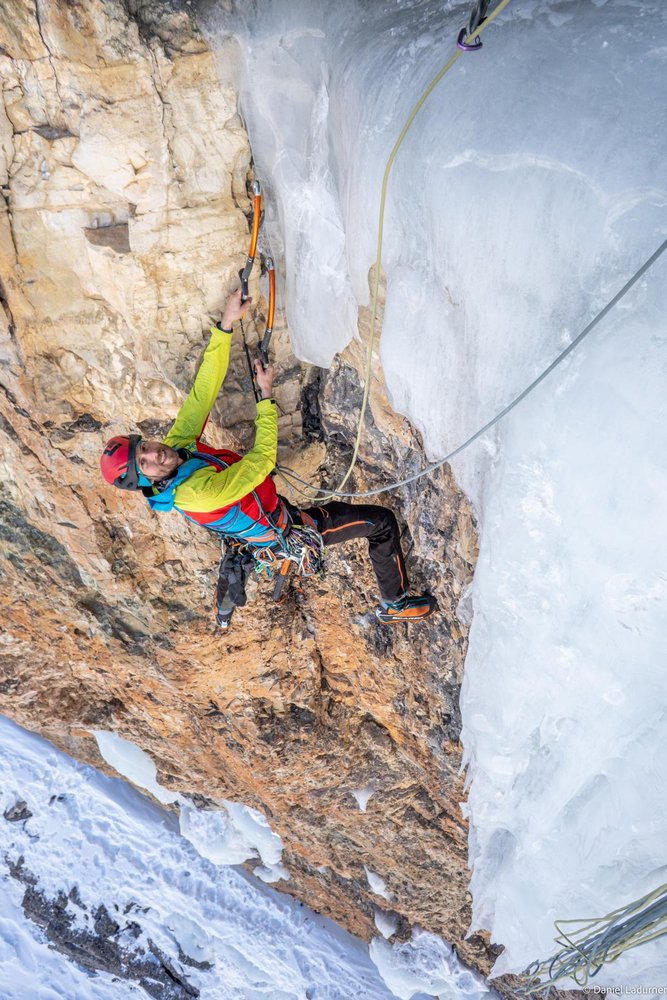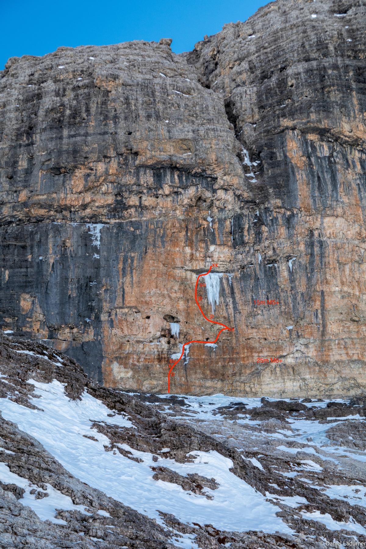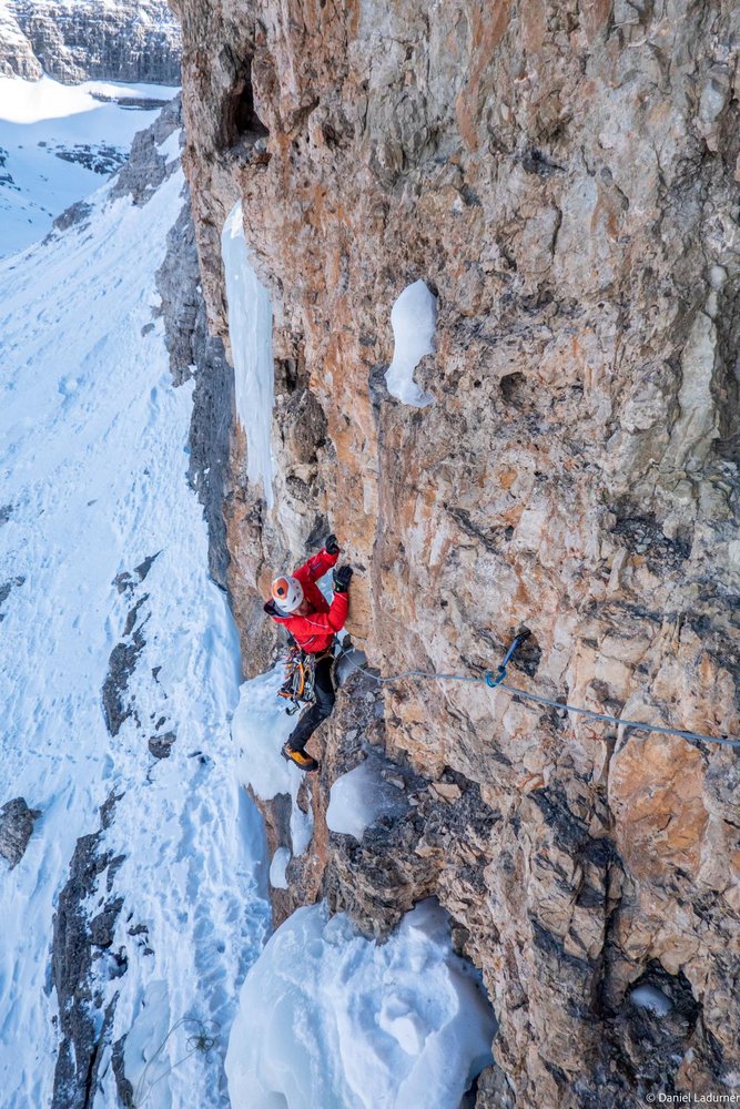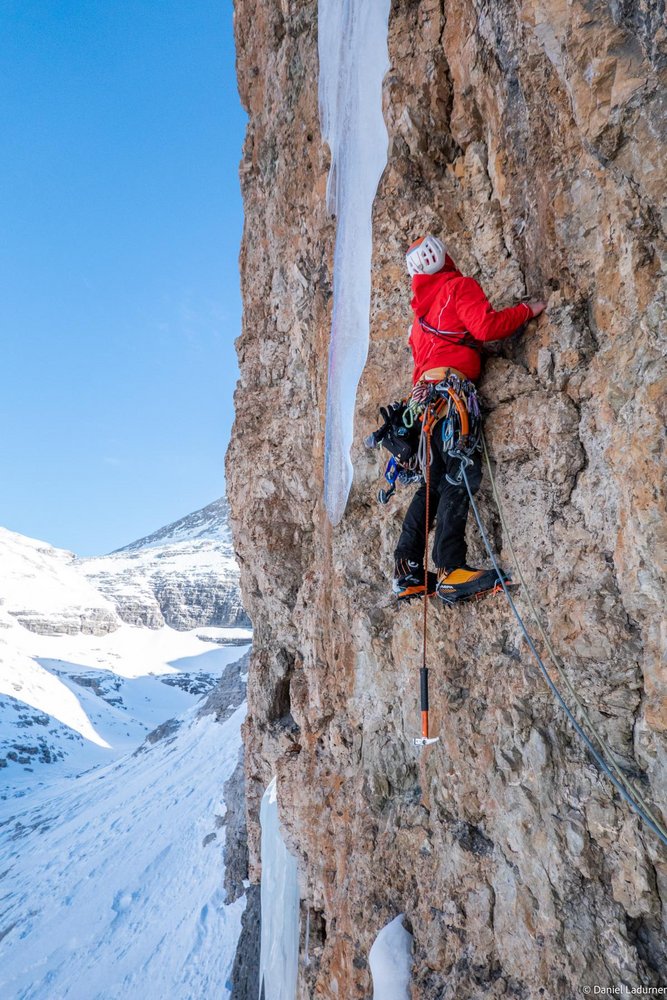 Kurze Route im Val Lasties an der Col Toron Nordwestwand mit Thomas Mair. Absicherung Cams bis #2 und einige Haken.